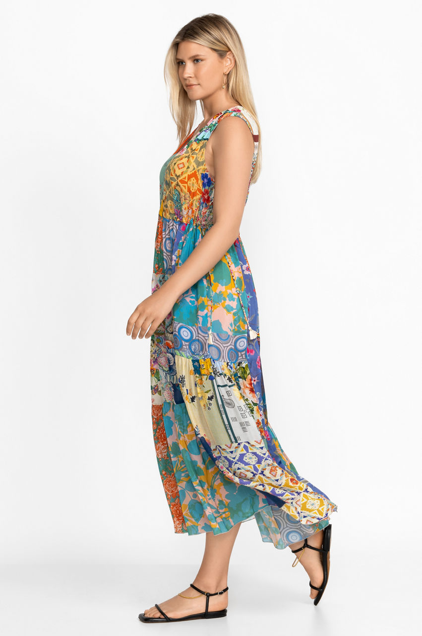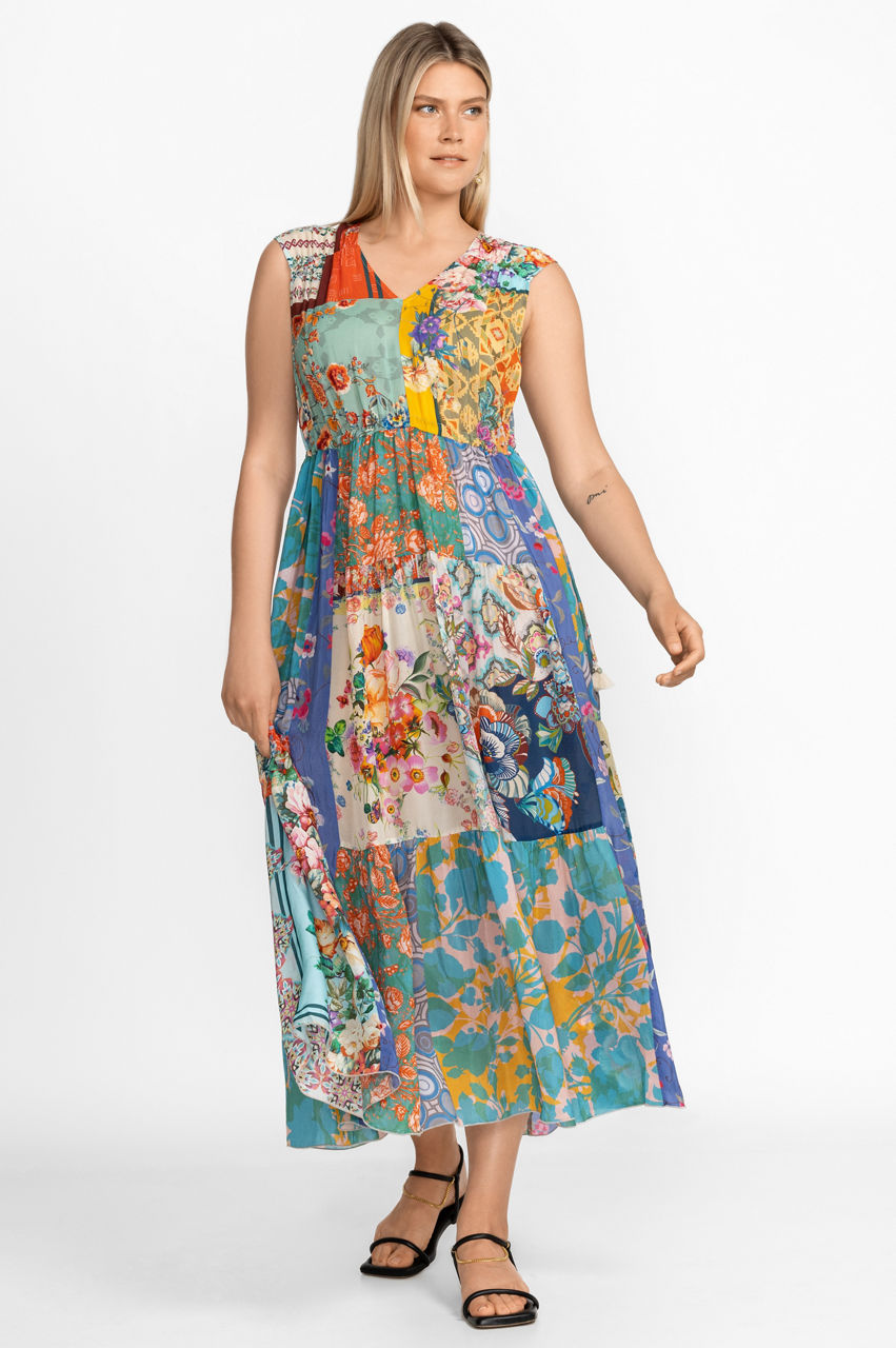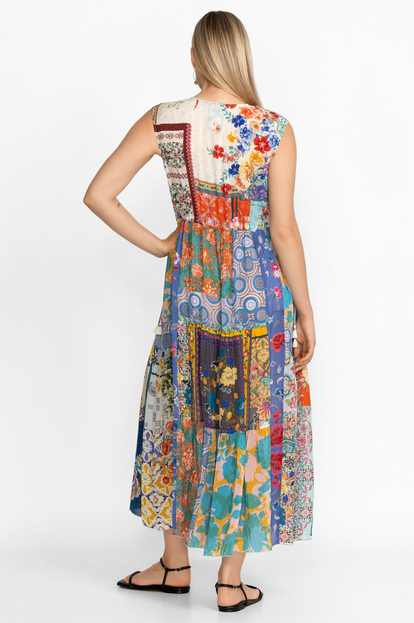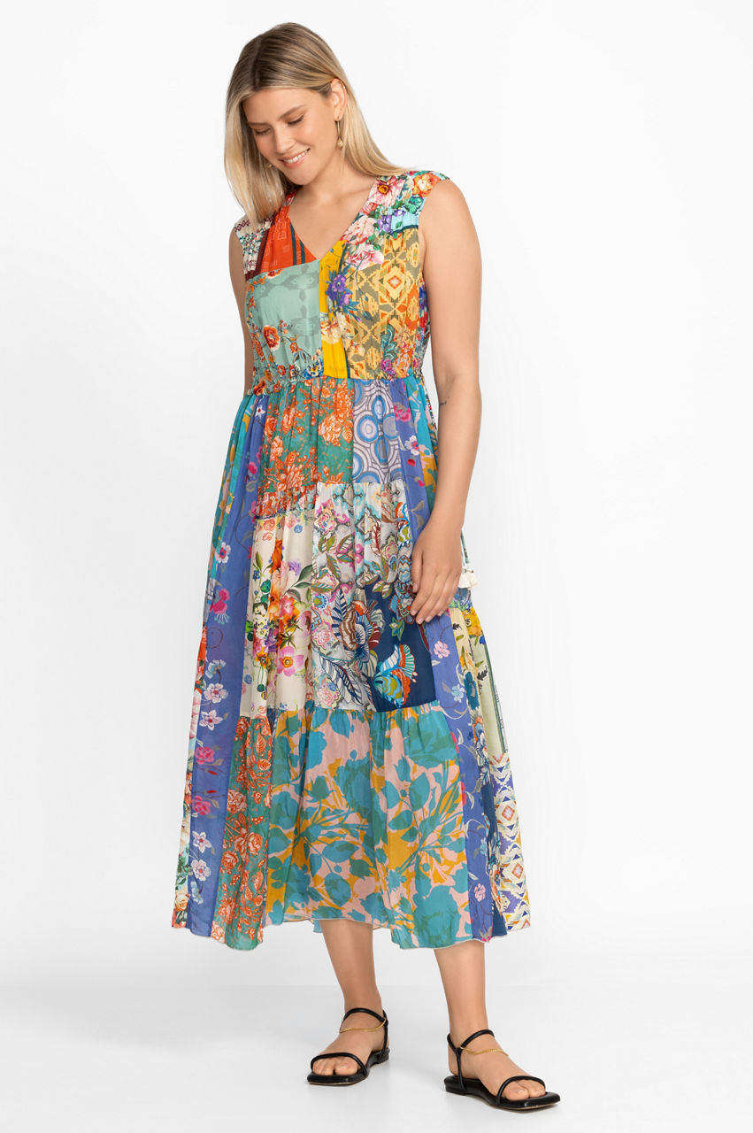 Take your warm-weather wardrobe in a feminine direction with the eye-catching Cherika Natania Dress. Perfect for garden parties and brunch with friends, this dress falls to a midi length that flares out at the hem and embodies a 50s charm complete with a flattering V-neck, tassels at the sides, and a vivid floral patchwork print. Style this dress with sandals or heels for an effortless occasion look.