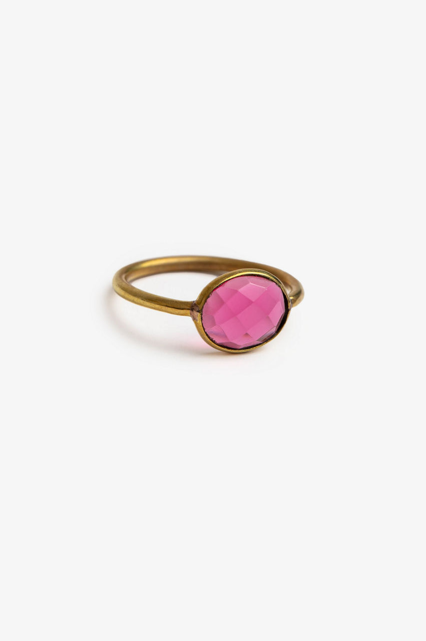 What better way to showcase the translucent look and delicate luster of pink quartz than to wear a chunky stone ring? This ring is sure to make a splash with its large pink quartz stone and elegant setting. The warm pink hue makes this cocktail ring an ideal accessory for a boho-chic look that features flowy bishop sleeves and geometric motifs.