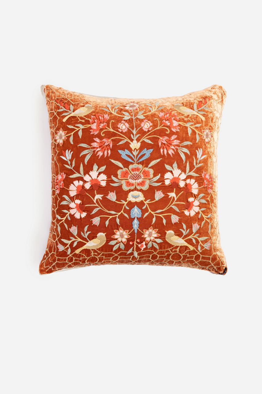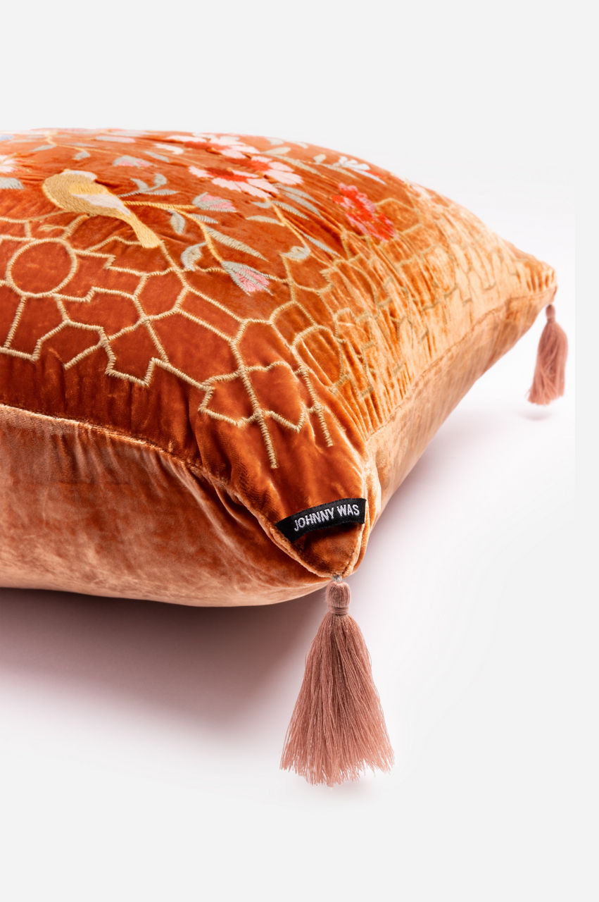 Punctuated with buds and opened blooms, the Clara Embroidered Pillow brings a subtle flash of muted orange to the home. This pillow is crafted from a smooth silk blend and features an invisible zipper, tassels for a luxurious touch, and a detailed embroidery comprising joyful florals. Use this pillow as a decorative feature in either the bedroom or the living room.