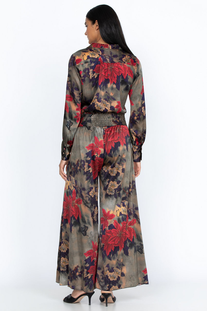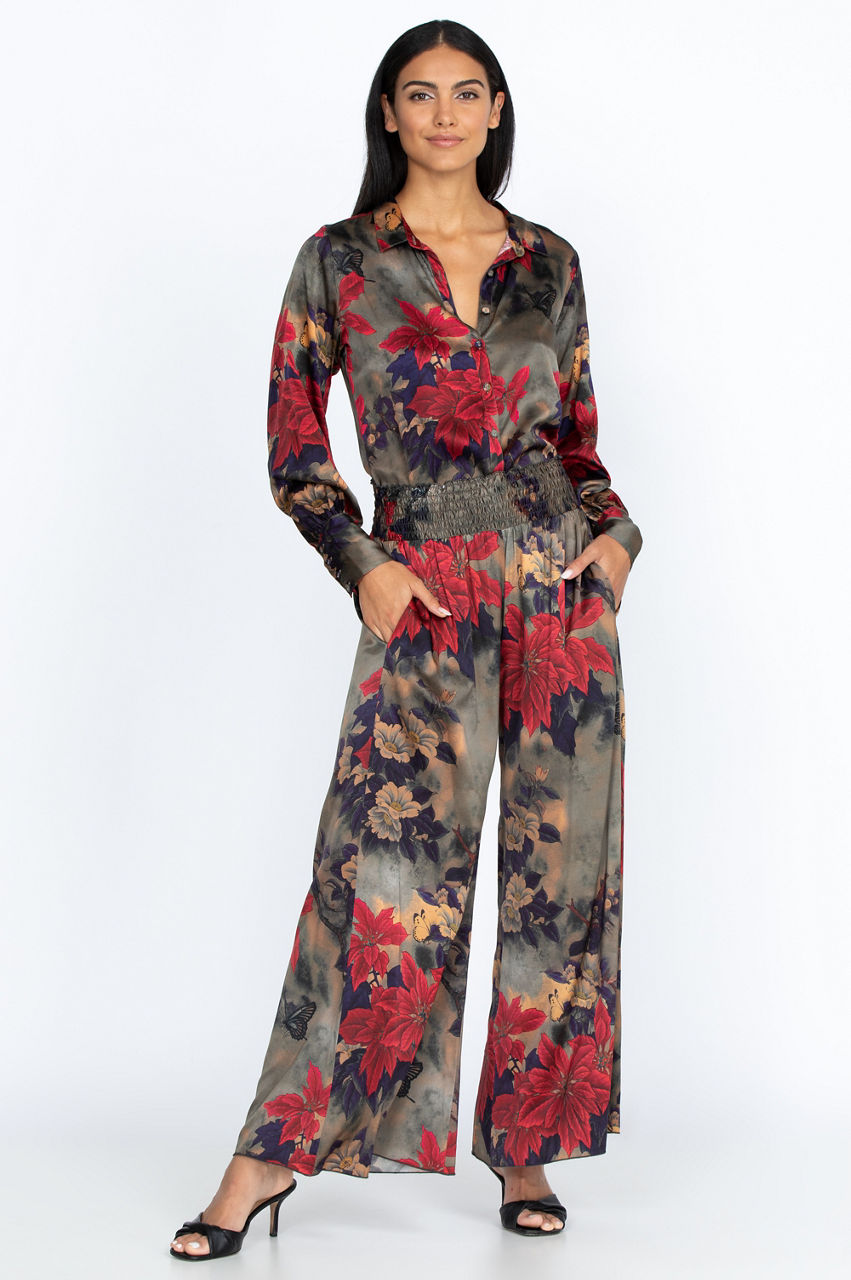 The colorful floral motifs of the Claret Rachel Pants instantly turn them into a statement piece. The comfortable elastic waistband and lightweight silk material will quickly make these pants a favorite wardrobe staple. Wear these floral pants with a denim jacket to play with textures or pair them with a simple button-down top for a sophisticated result.