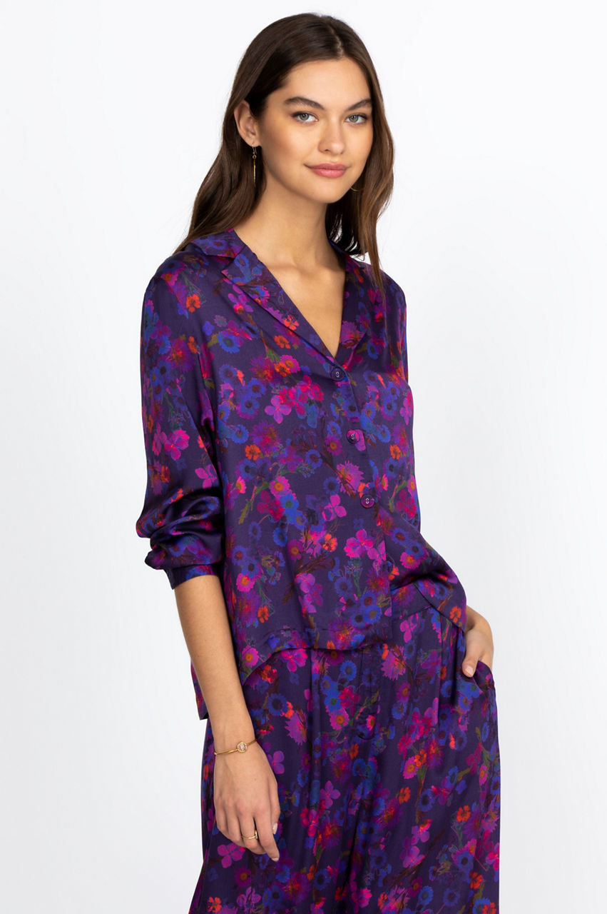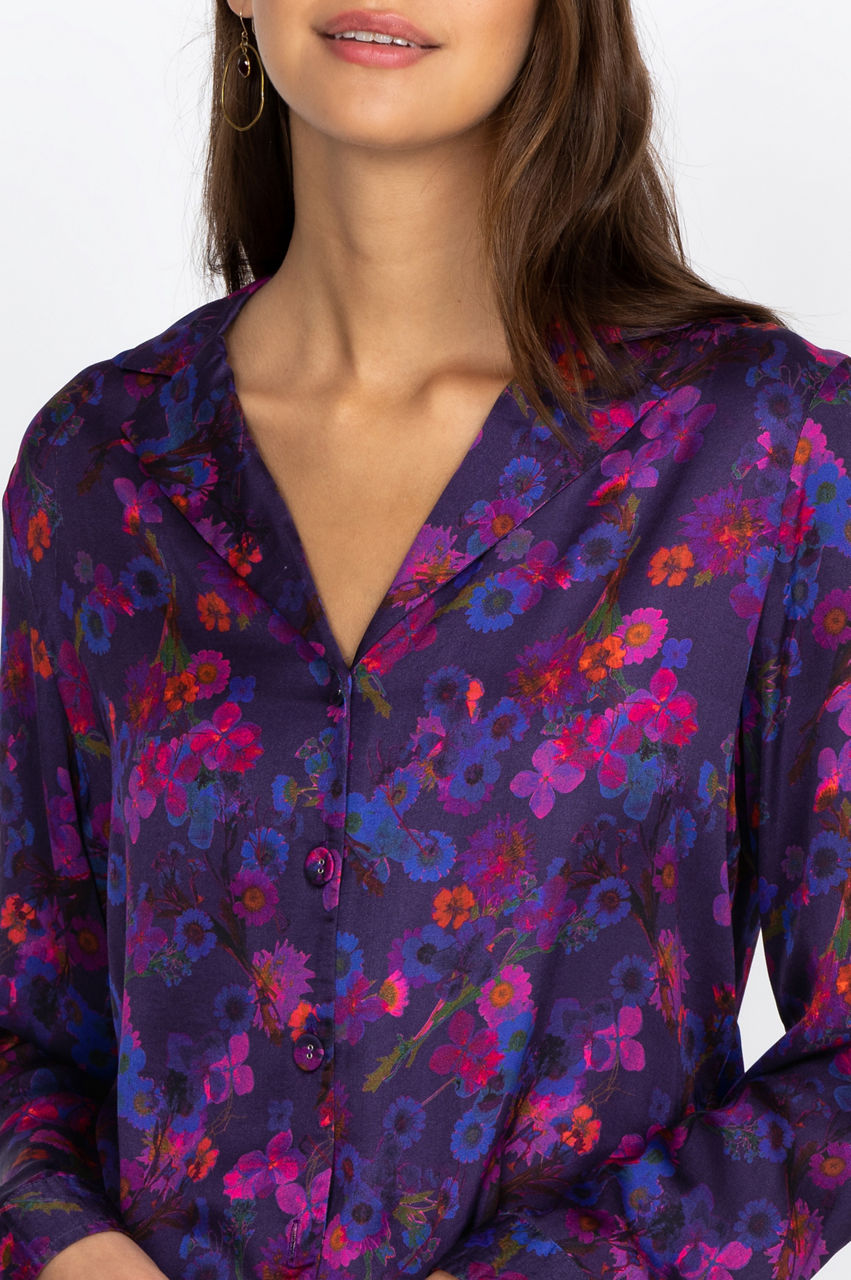 This lightweight shirt features a bold all-over floral print that will add a dash of color and originality to your outfits. The button-down cut, classic collar, and front pocket create a vintage-inspired feel for this gorgeous top. Create a stylish contrast by pairing this floral top with some cream-colored leggings, or style it with a flowy skirt.