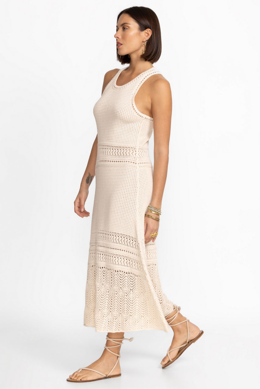 Crafted from 100% breathable cotton, the Clemente Sweater Midi Dress is the perfect neutral base for a variety of styles. Featuring a crew neckline, this sleeveless midi length dress offers surprising comfort in a form fitting bodice. Pair with a bold silk scarf or ornate jewelry for an elevated casual look.