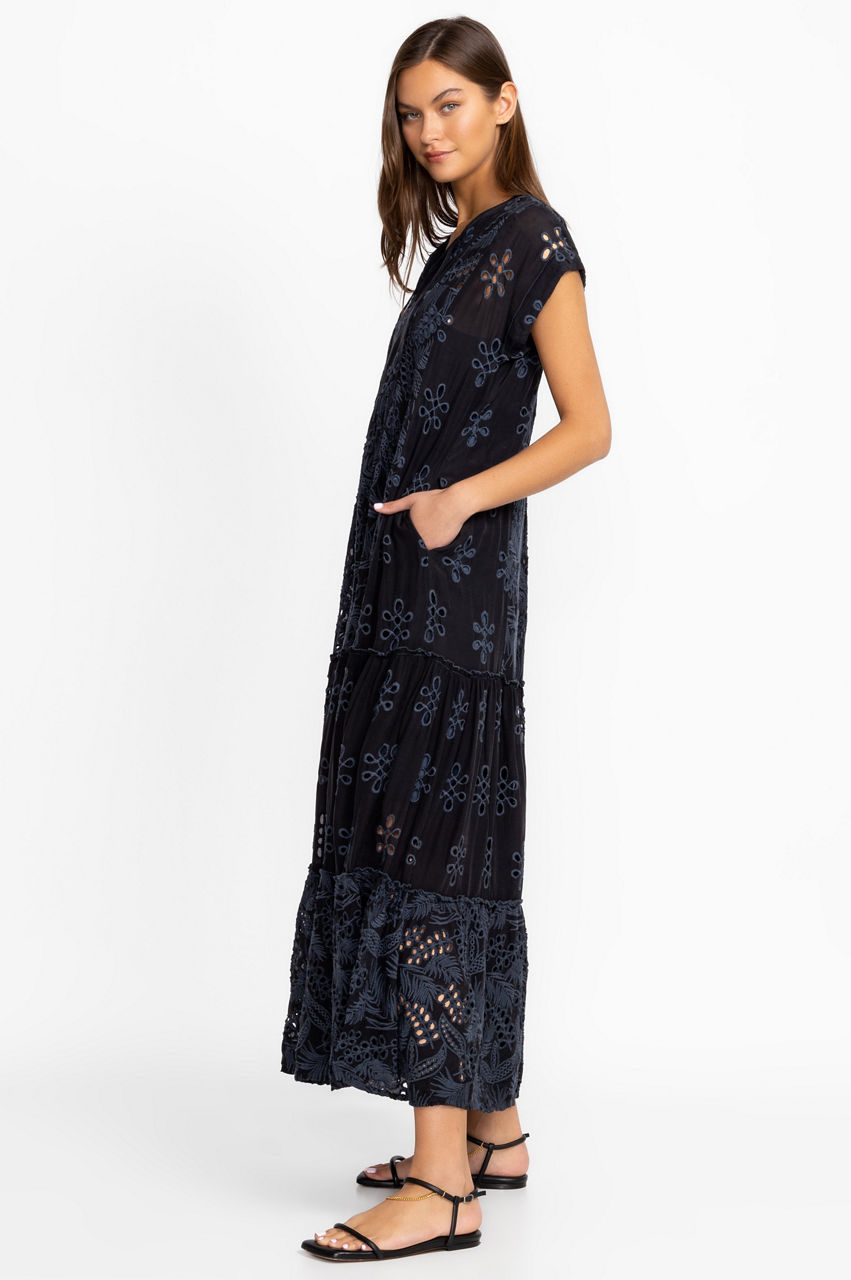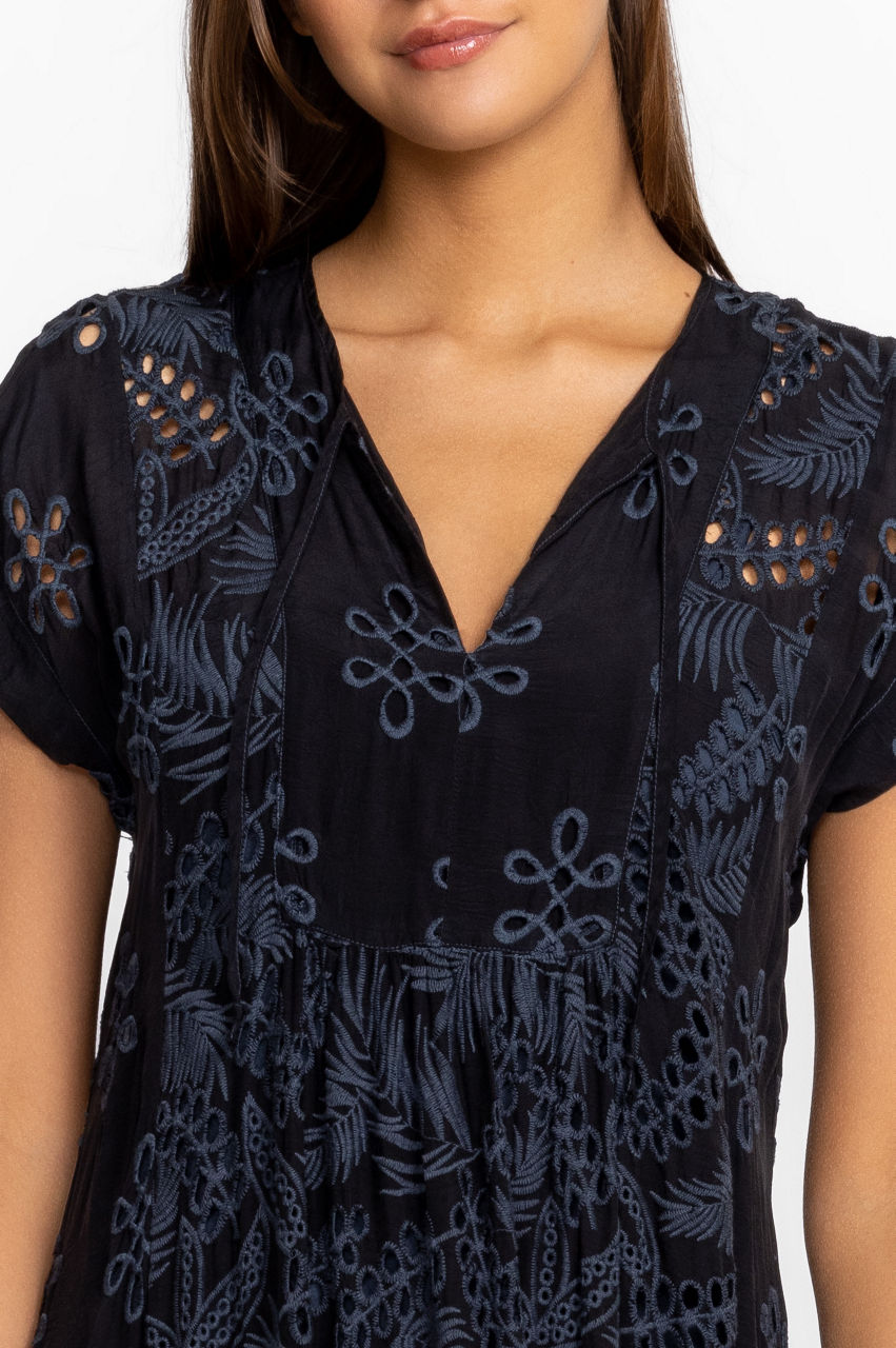 Crafted from a lightweight fabric, the Cleo Aurelia Dress harmoniously balances a bohemian aesthetic with feminine details. A stylish pick for al fresco dining and vacations, this dress features a V-neck, short sleeves, pockets, a removable slip, and a detailed embroidery. Pair this dress with hoop earrings and sandals to family gatherings.