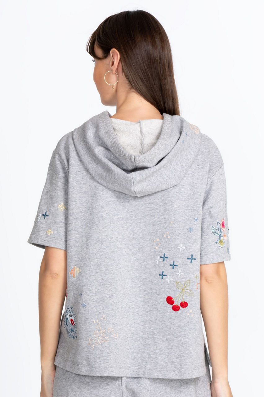 Our on-trend Cleo Short Sleeve French Terry Hoodie is a classic that you re sure to reach for again and again this season and for many seasons after. Its exquisite embroidery, ultra-soft fabrication and lovely silhouette give you everything you need in a top and more. Pair this piece with your favorite cargo pants and strappy sandals for a charming Bohemian look.
