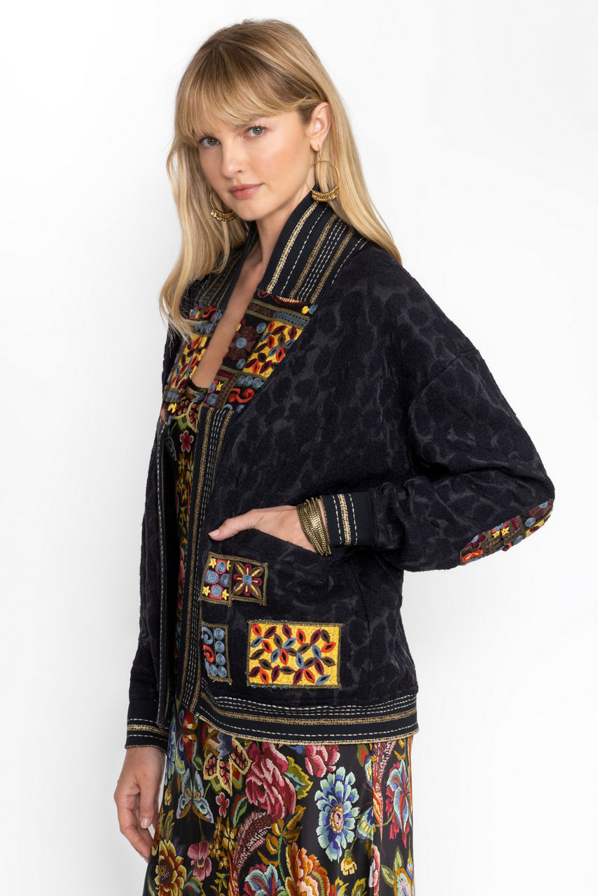 Offering a fresh take on a classic wardrobe staple, the Cobble Cardigan adds a hint of whimsy to your wardrobe. Featuring a shawl collar and contrasting trim, this unique cardigan is embellished with colorful patches and welt pockets at the front. Layer over a traditional tee and pair with relaxed-fit jeans for a casual look that never goes out of style.