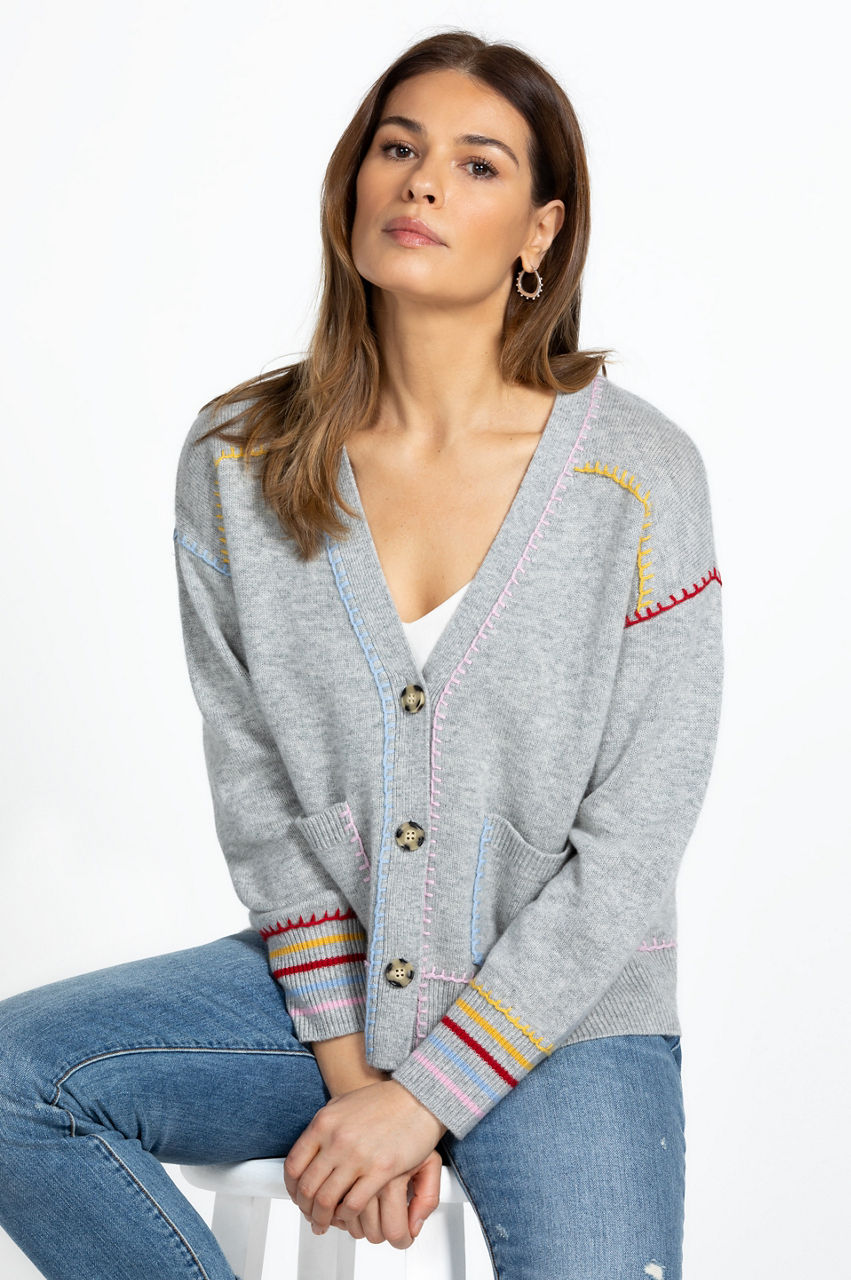 A classic winter essential, the Cashmere Colorful Stitch Cardigan puts a playful spin on a functional cold-weather silhouette. Spun from an insulating wool and cashmere mix, this cardigan in cut in a regular fit with a V-neck, a front button closure, long sleeves, and two patch pockets. Elevated by colorful whipstitching for an upbeat finish, this cardigan can be worn solo in-between seasons or layered as the temperatures drop.