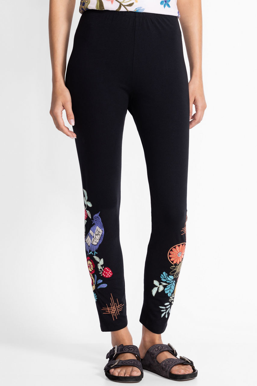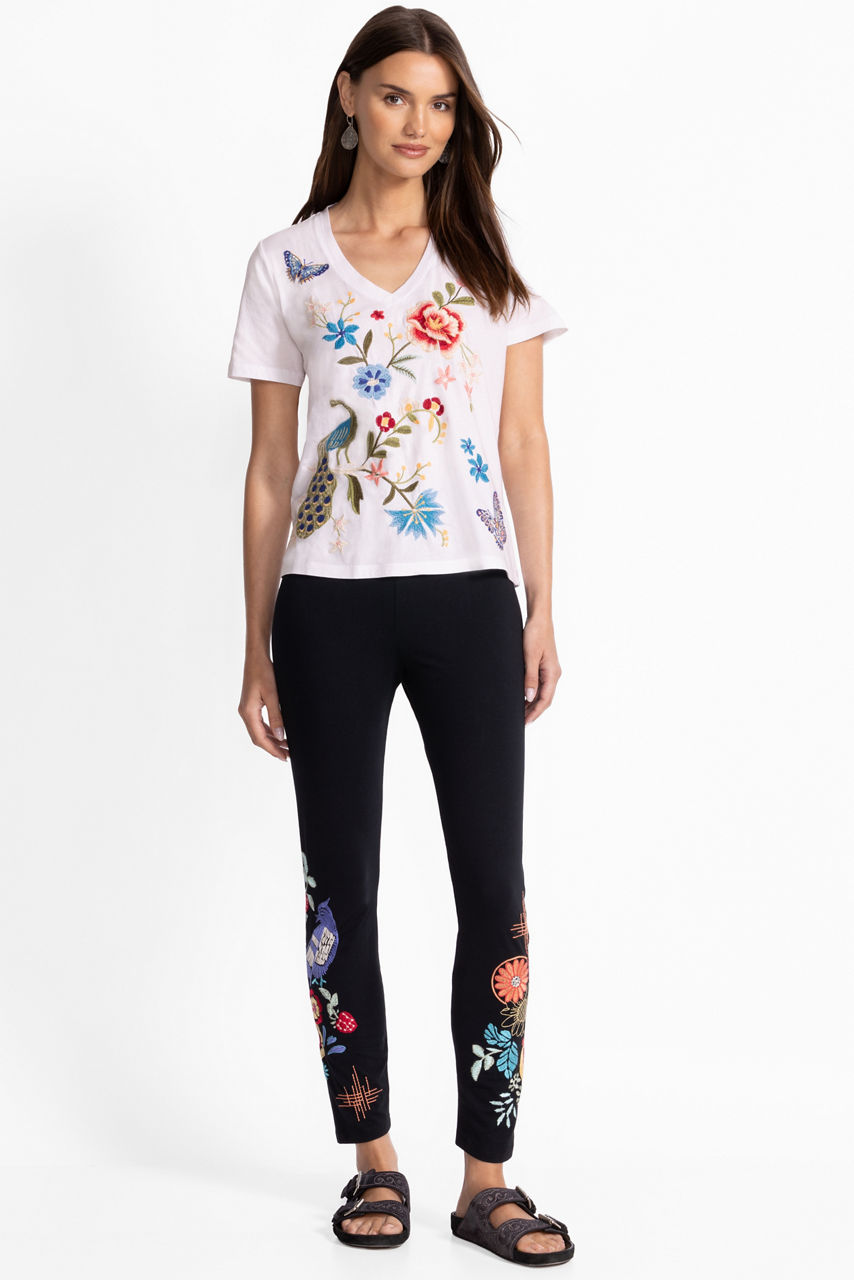 The Cora Legging offers a bold twist on a classic silhouette with vibrant floral embroidery that adds artistic flair. Soft and stretchy, these leggings deliver all-day comfort with a flattering, flexible fit. The ankle-grazing length and detailed stitching make them an effortless standout—perfect for pairing with relaxed tees or flowy blouses. Dress them up or down for a look that’s as versatile as it is eye-catching.