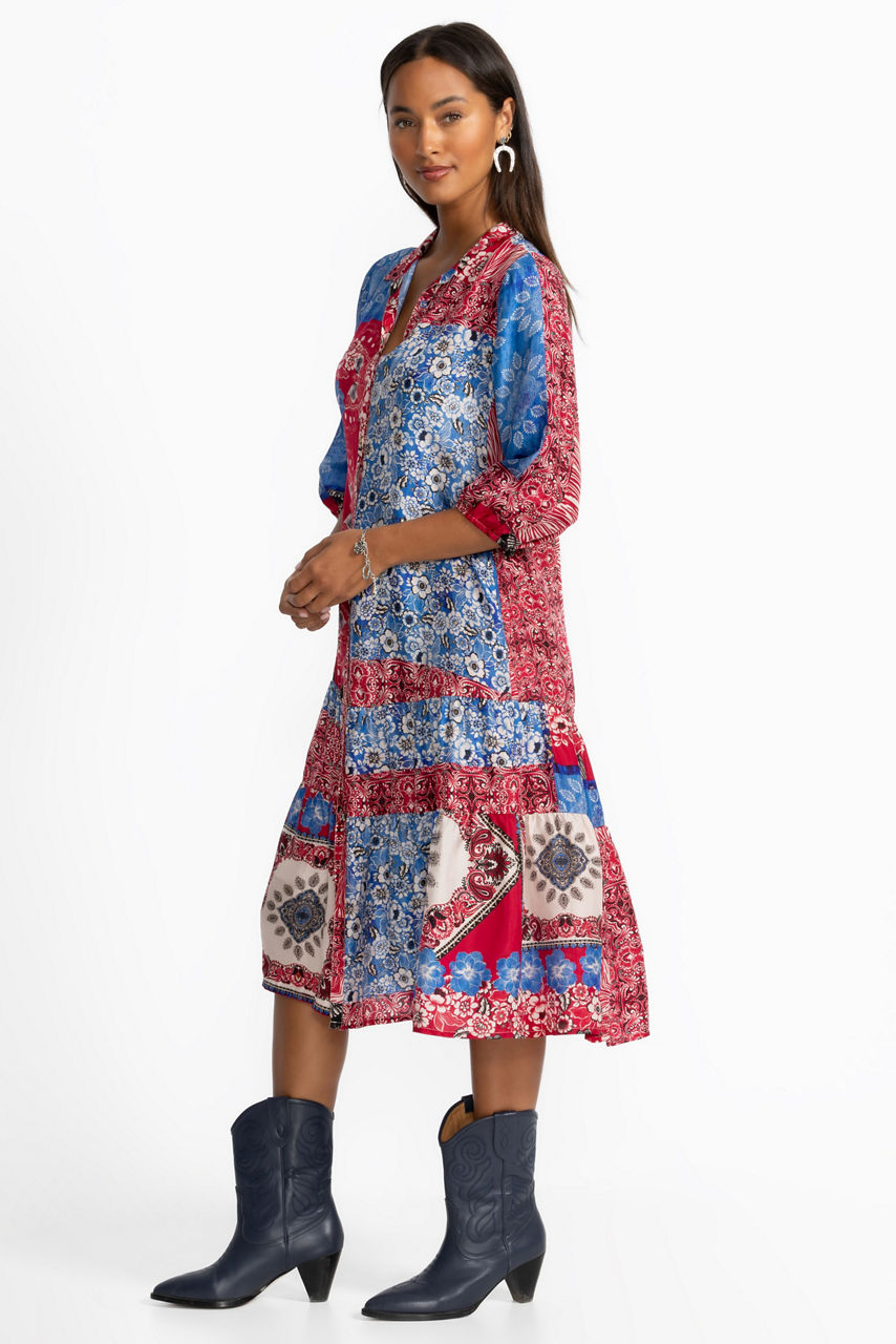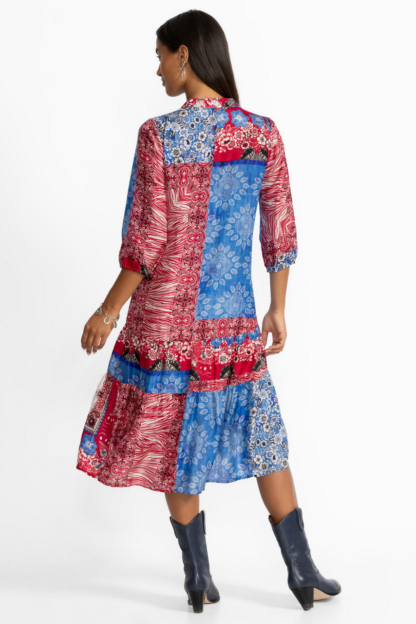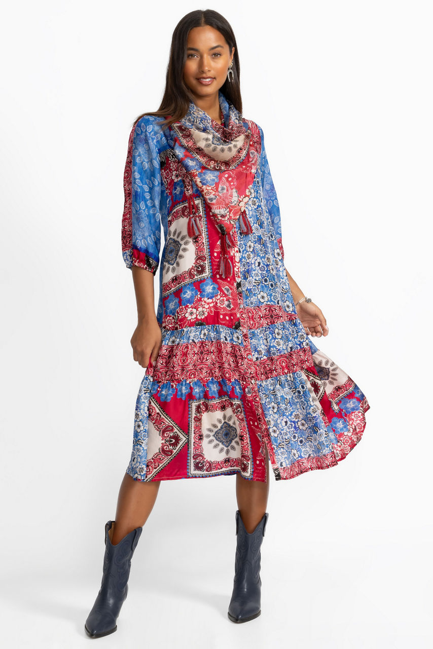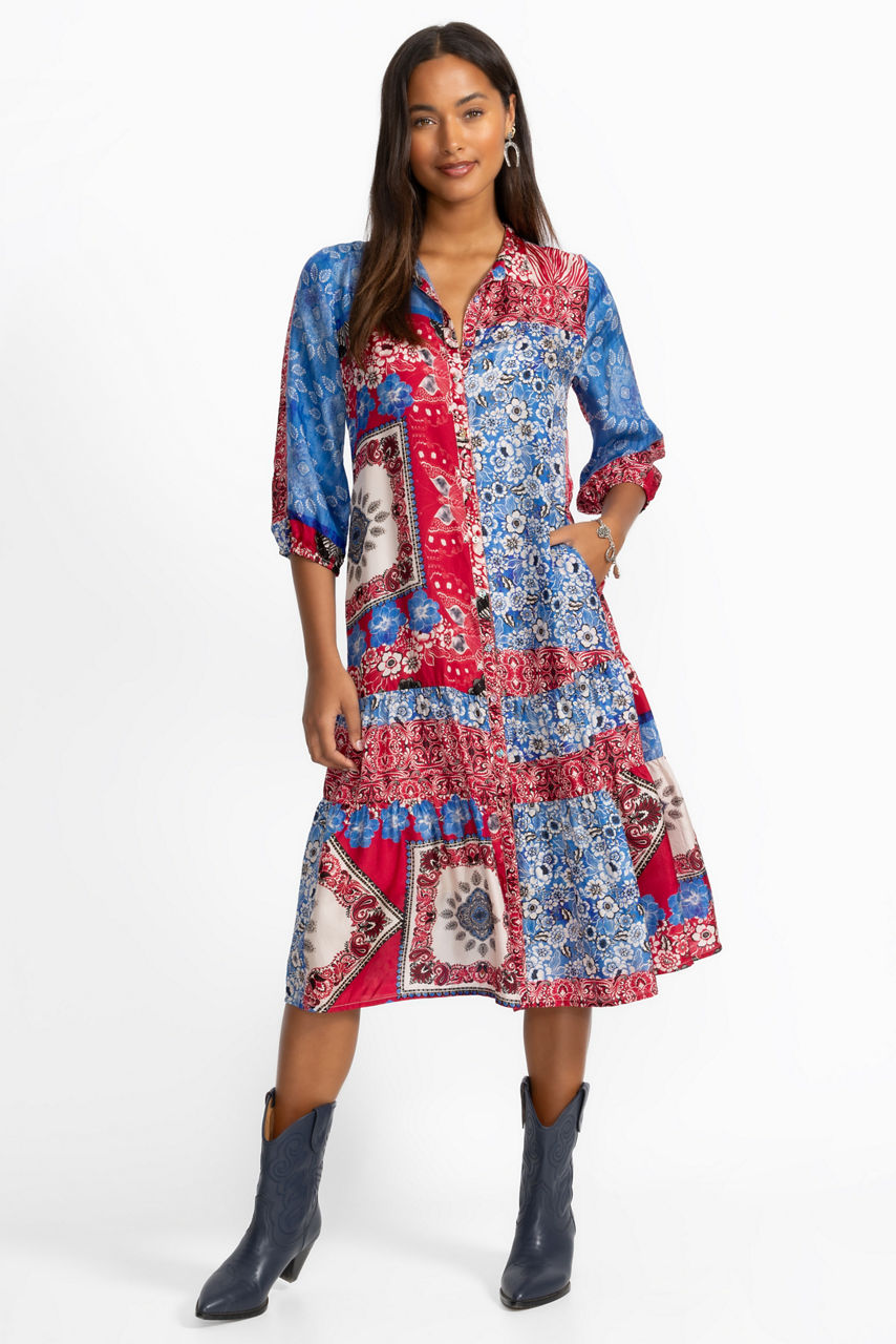 The Cornelia Dress is crafted from 100% sumptuous silk and is embellished with a kaleidoscope of brilliant color and pattern. Featuring a banded collar and full button-front, this slip-lined dress is finished with on-seam pockets and a beautiful, tiered skirt. Pair with espadrille sandals and a wide-brim sun hat for a vacation-worthy look.