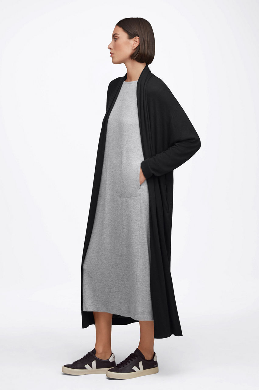 It doesn t get much more perfect than our Cozy Duster. Open in the front and with functional pockets, this brushed jersey duster is perfect for layering. Throw this on over our Endurance Leggings and matching Sports Bra to be yoga ready.