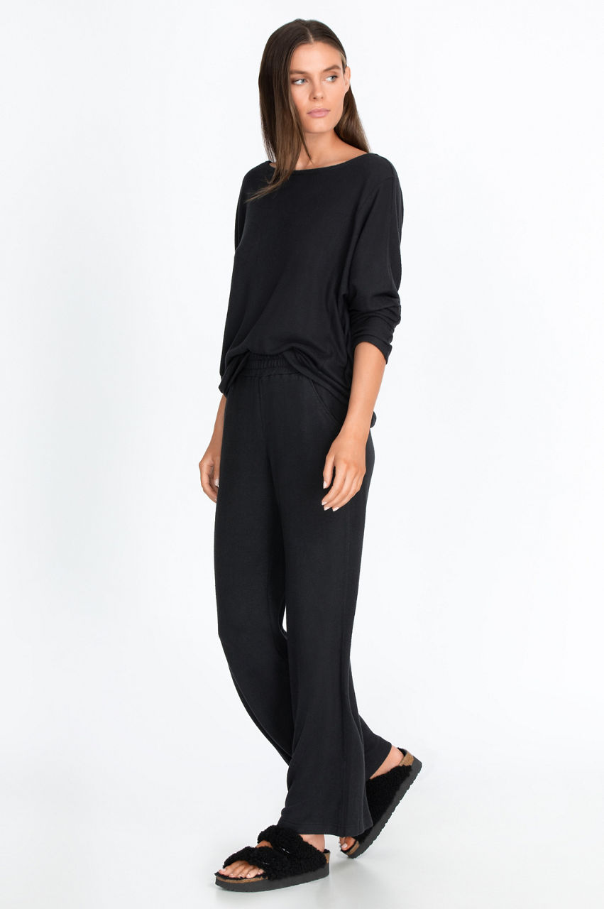 The Cozy Wide Leg Pant is the perfect combination of comfort and function. The soft brushed jersey, pockets and elastic waist make these pants easy to wear, while the silhouette keeps you looking stylish. Paired with some tennis shoes and your favorite sweater, these pants make the ultimate wardrobe edition for all your busy days ahead.