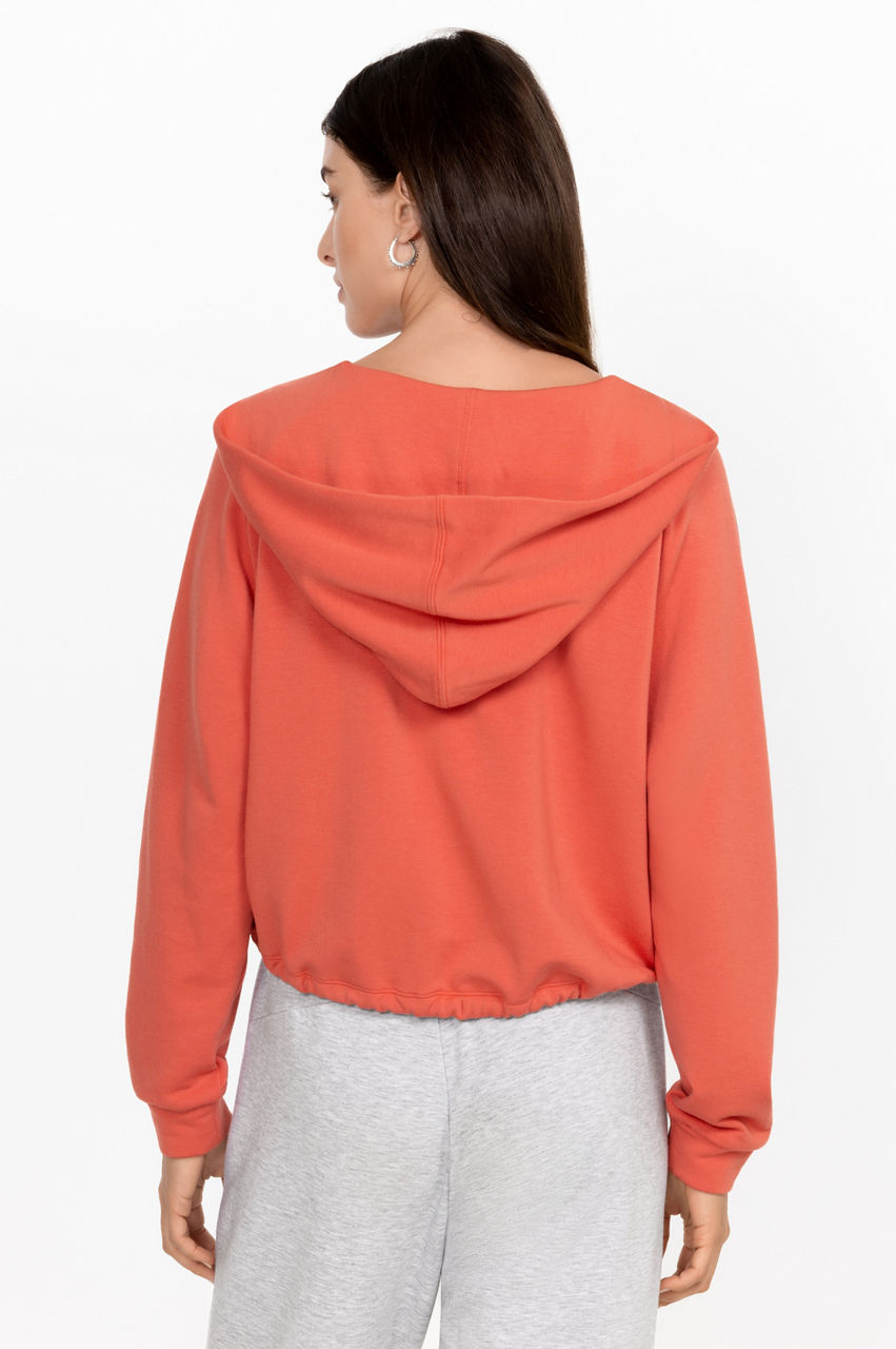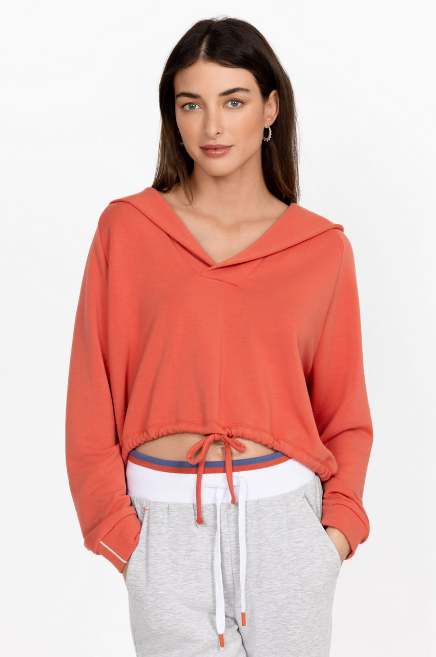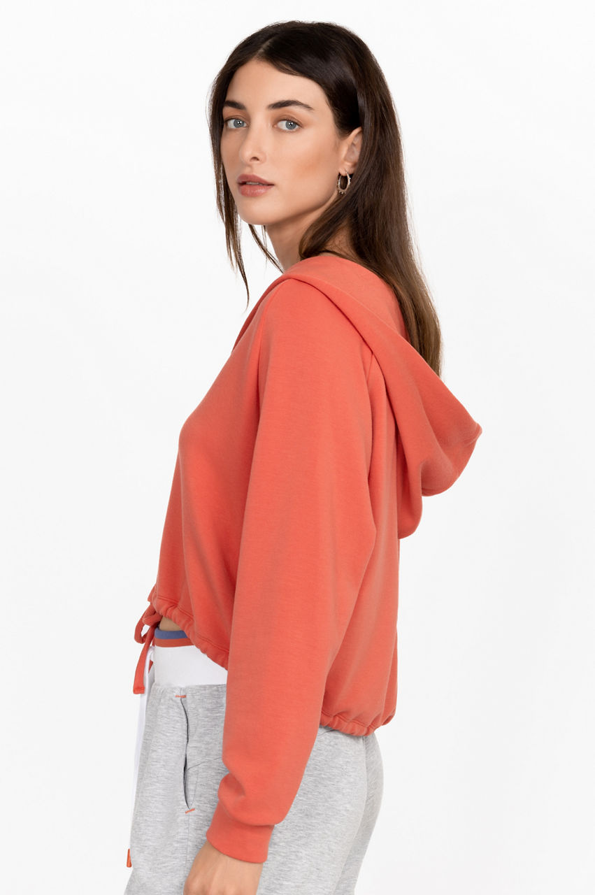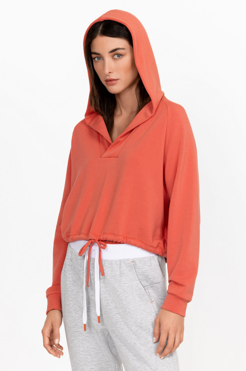 A versatile downtime staple, the Cropped Fleece Hoodie is a comfortable choice for light exercise and relaxation. This cropped hoodie is made from a breathable fabric with a hint of stretch for comfort and features a hood with cross over detailing at the front, long sleeves, and an adjustable drawcord hem to define the silhouette. Wear with wide leg pants for a pared-back take on leisurewear.