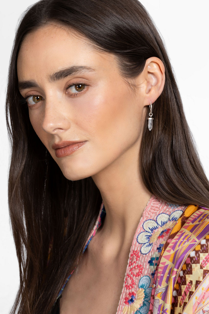 Uniquely crafted with personality and character, the Crystal Drop Earrings are a fashionable conversation piece. Crafted from silver-tone metal and finished with a shepherd's hook back, these eye-catching earrings each hold a brilliant crystal at the apex. Pair with a breezy linen dress and bold silver jewelry for a stunning finished look.