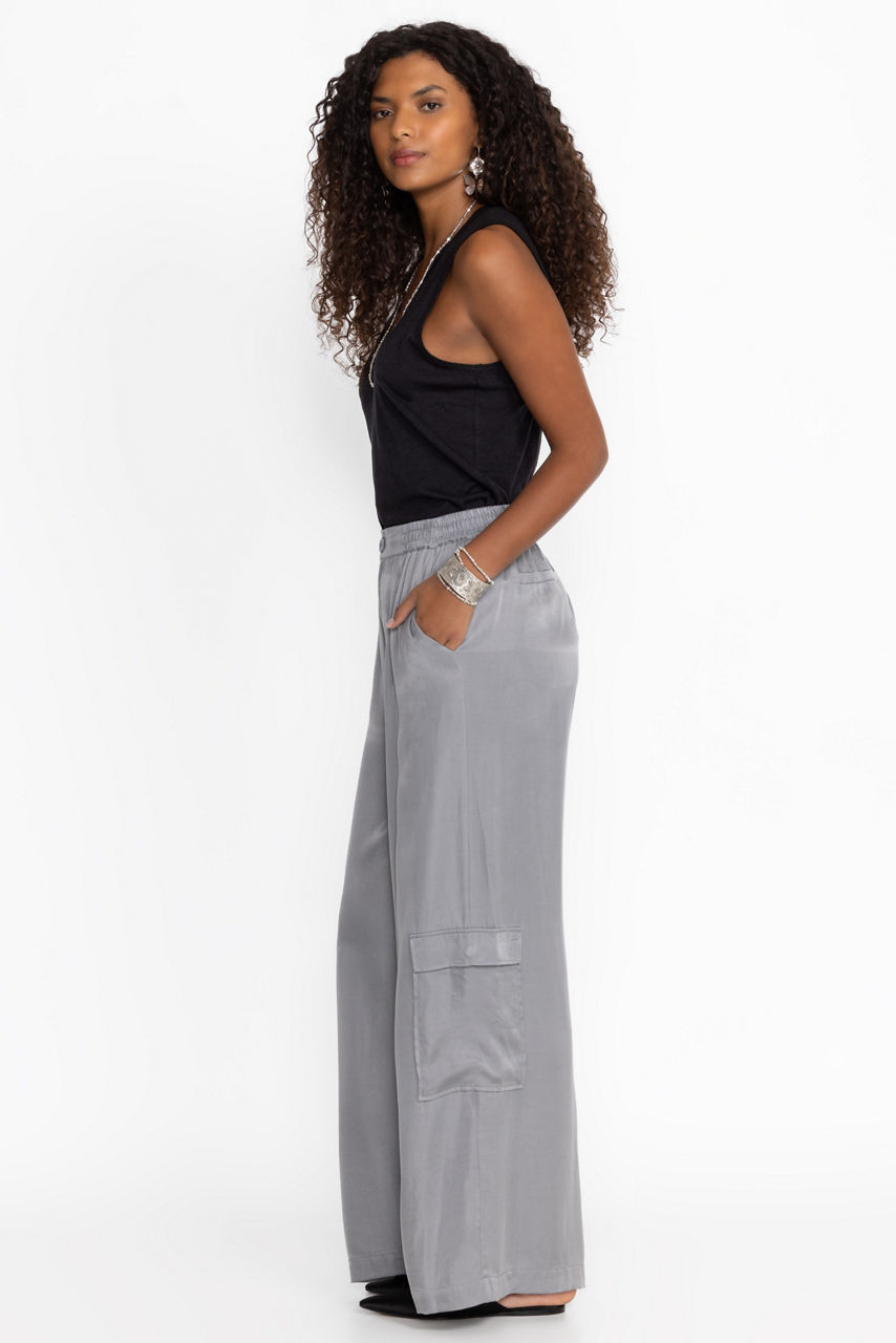 Crafted from a lightweight flowing fabric, the Cupro Pleated Pull On Pants add a stylish flare to a classic wide leg. Featuring an elastic waist and pleated detailing at the front, these wide-leg pants are finished with slant packets and cargo pockets for a unique twist. Pair with a fitted tank and sandals for a polished casual look.