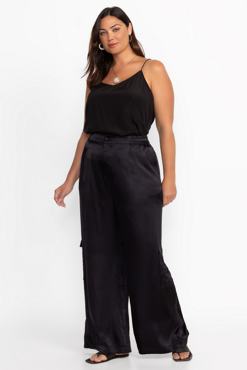 Offering an elevated take on classic cargo pants, the Cupro Pleated Pull On Pants are crafted from a lightweight flowing fabric. Featuring an elastic waist with a button-front closure, these wide leg pants are finished with pockets at the front and back and cargo pockets at the leg line. Pair with a fitted top and trendy sneakers for a modern casual look.