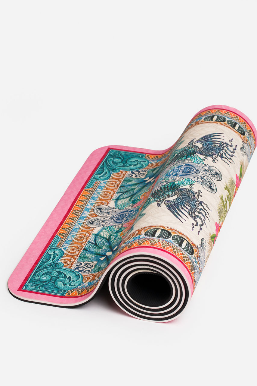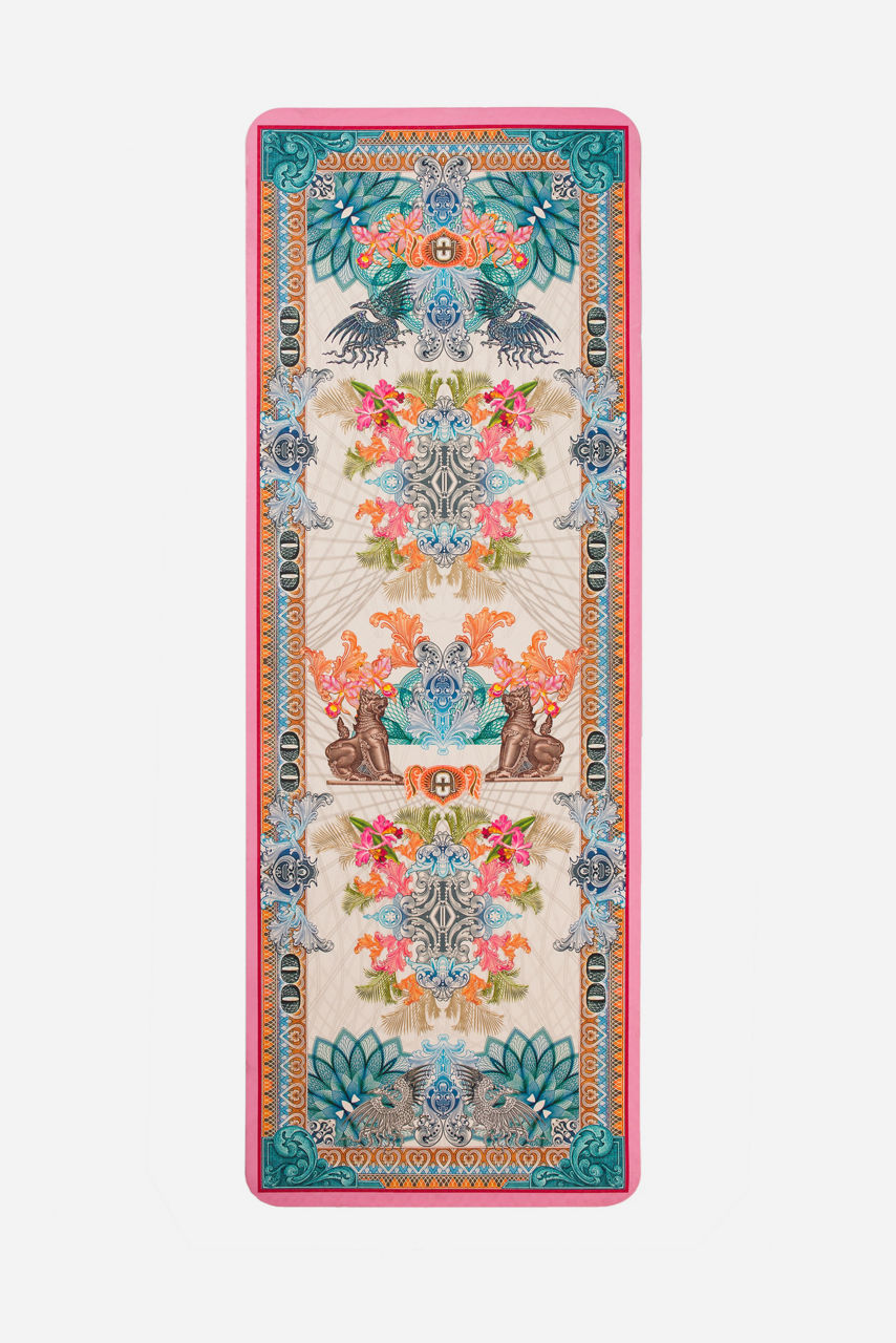 The Currency Yoga Set features a stunning print that mixes geometric and nature-inspired motifs. This original and colorful set includes a comfortable yoga mat and a convenient carry bag to protect and transport the mat. It s an ideal set for practicing yoga at home, outside, or even during your work breaks.