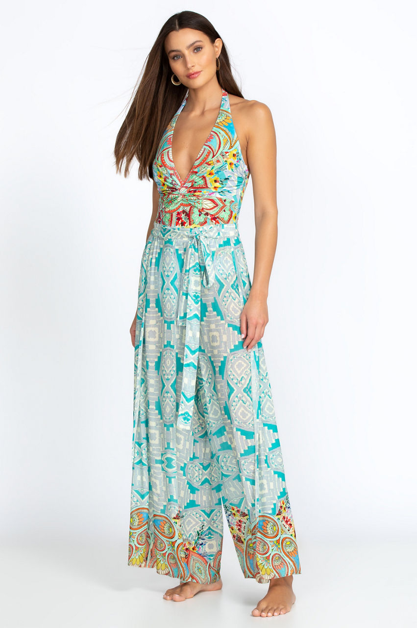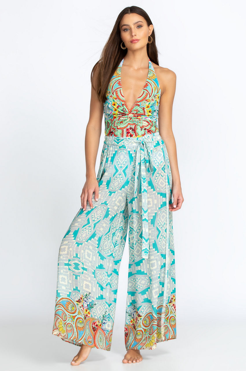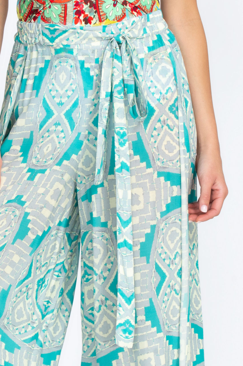 Make a singular style statement for the summer season in our Dandrige Wrap Pant that comes in breathtaking colors and an intricate, visually stunning print. In addition to the boho-inspired hues and patterns throughout, the pants with elastic waistband and self tie look great paired with a simple short-sleeved blouse and sandals for a great casual vibe.