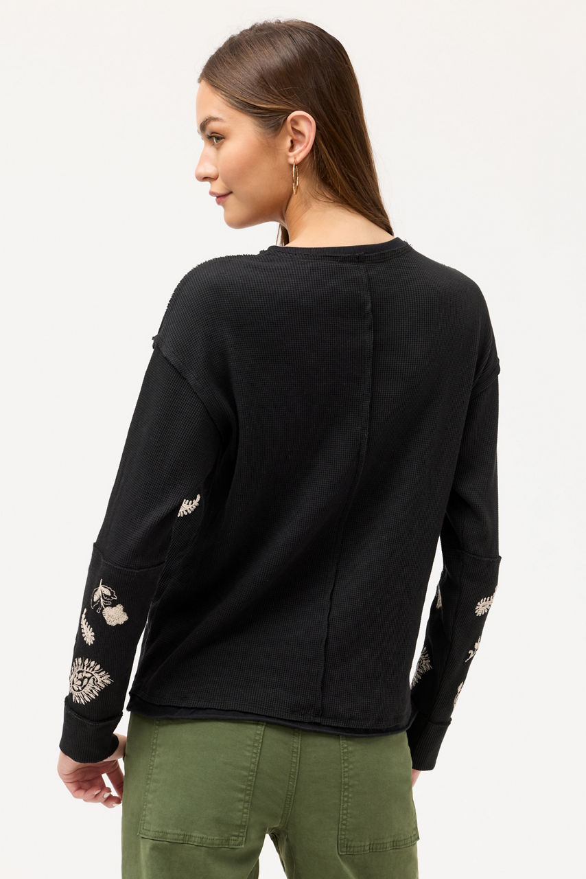 Crafted from a breathable cotton blend, the Daniela Patchwork Thermal is equal parts casual and elevated. Featuring a crew neckline and long sleeves, this easy thermal top is finished with intricately embroidered floral detailing for a distinctly feminine feel. Pair with relaxed-fit jeans and fashion sneakers for a casual weekend ensemble.