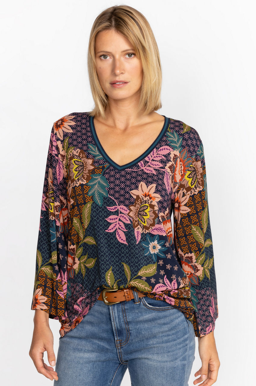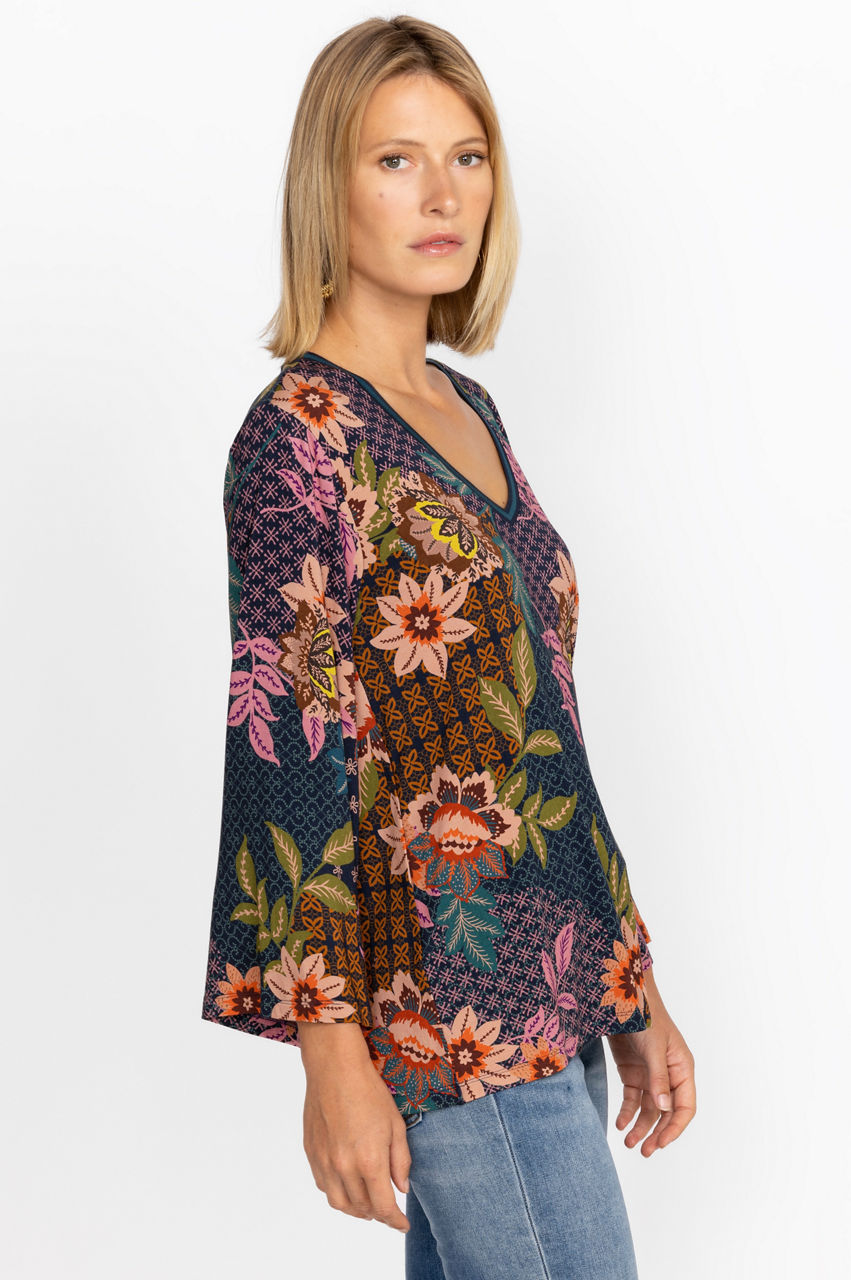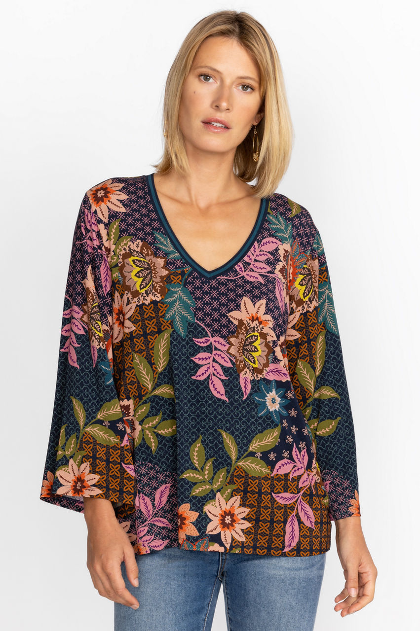 Emboldened with vivid floral bouquets, the Delfino V-Neck Kimono Sleeve Tee offers an easy upgrade to the typical casual t-shirt. Featuring a relaxed fit and comfortable open V-neckline, this tee is embellished with eye-catching florals and is crafted with ease of wear in mind. Pair with crisp cotton shorts for a vivacious warm-weather ensemble.