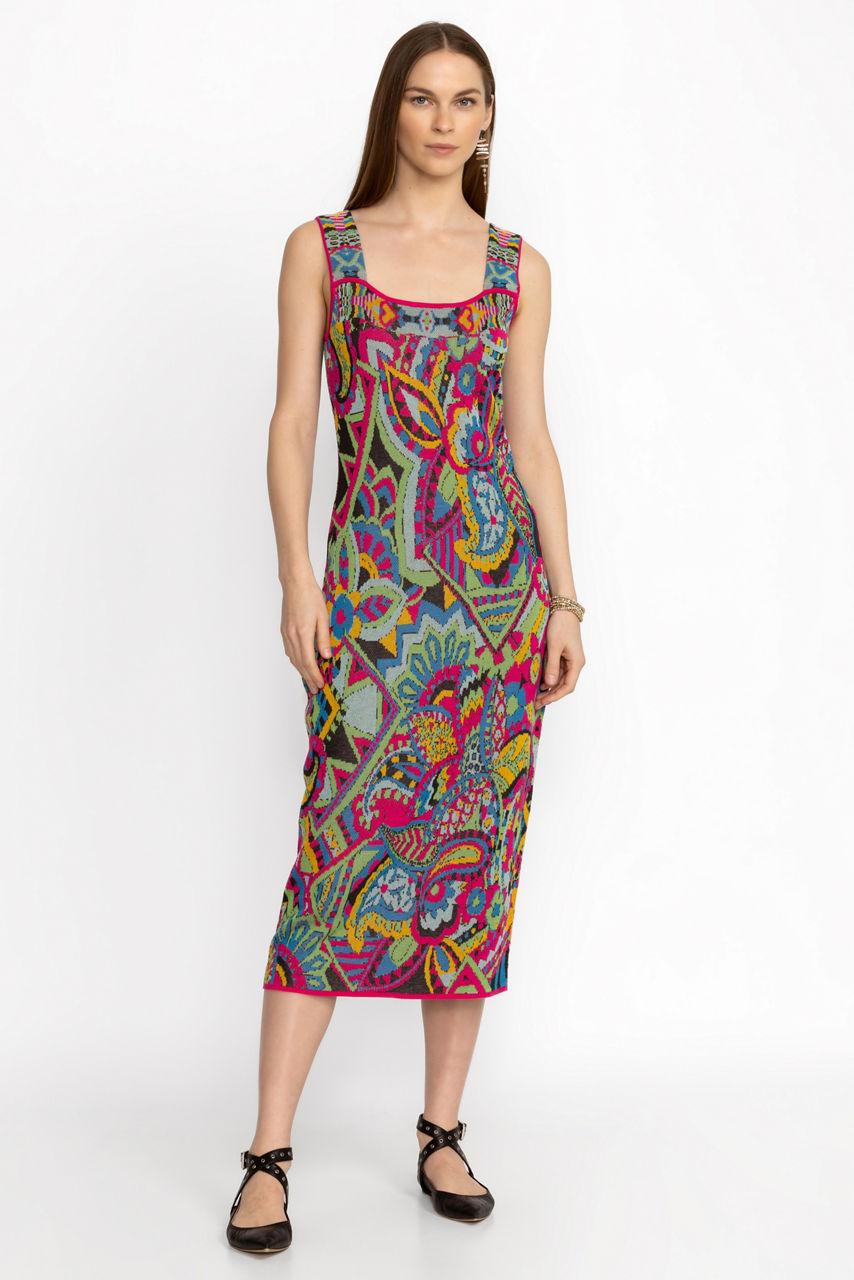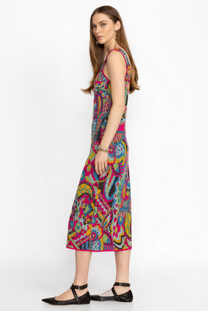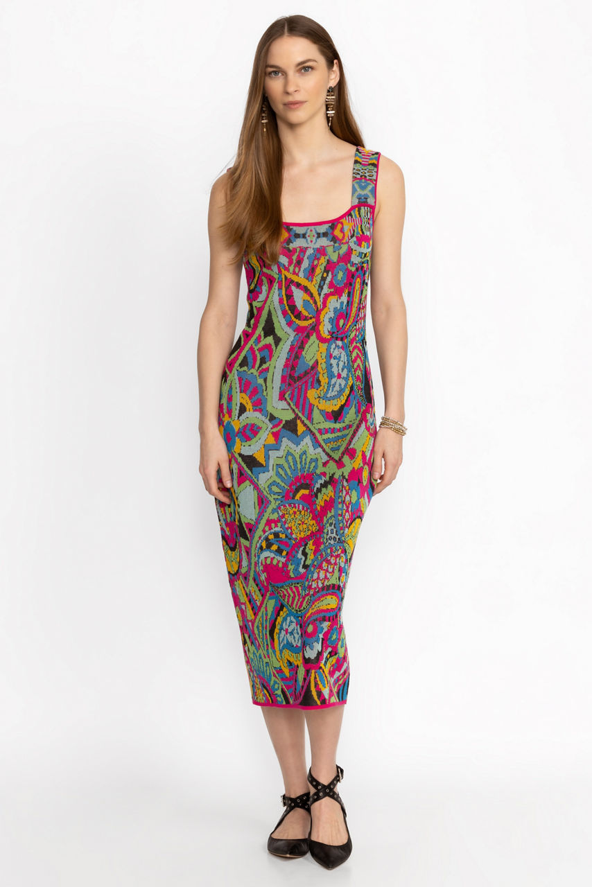 Crafted from 100% Pima cotton, the Demarne Mini Dress is artfully adorned with vibrant color. Featuring a square neckline and comfortable wide shoulder straps, this colorful sundress offers a relaxed straight silhouette in a trendy midi length. Pair with espadrille wedges and a wide-brim sun hat for a dramatic resort look.