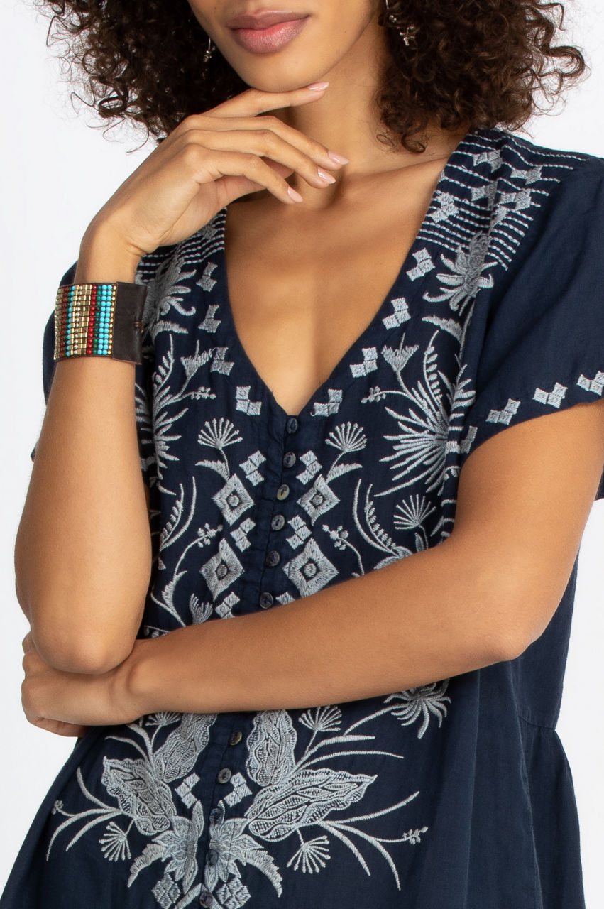 Our artisan-inspired embroidered Devere Breezy Dress has a fun, breezy style with classic elegance. The beautiful artisan embroidery and flattering V-neck make this dress the perfect choice for an evening out with friends. Pair the dress with strapless flats, a leather clutch, and dangly jewelry for the flowy, boho-chic look.