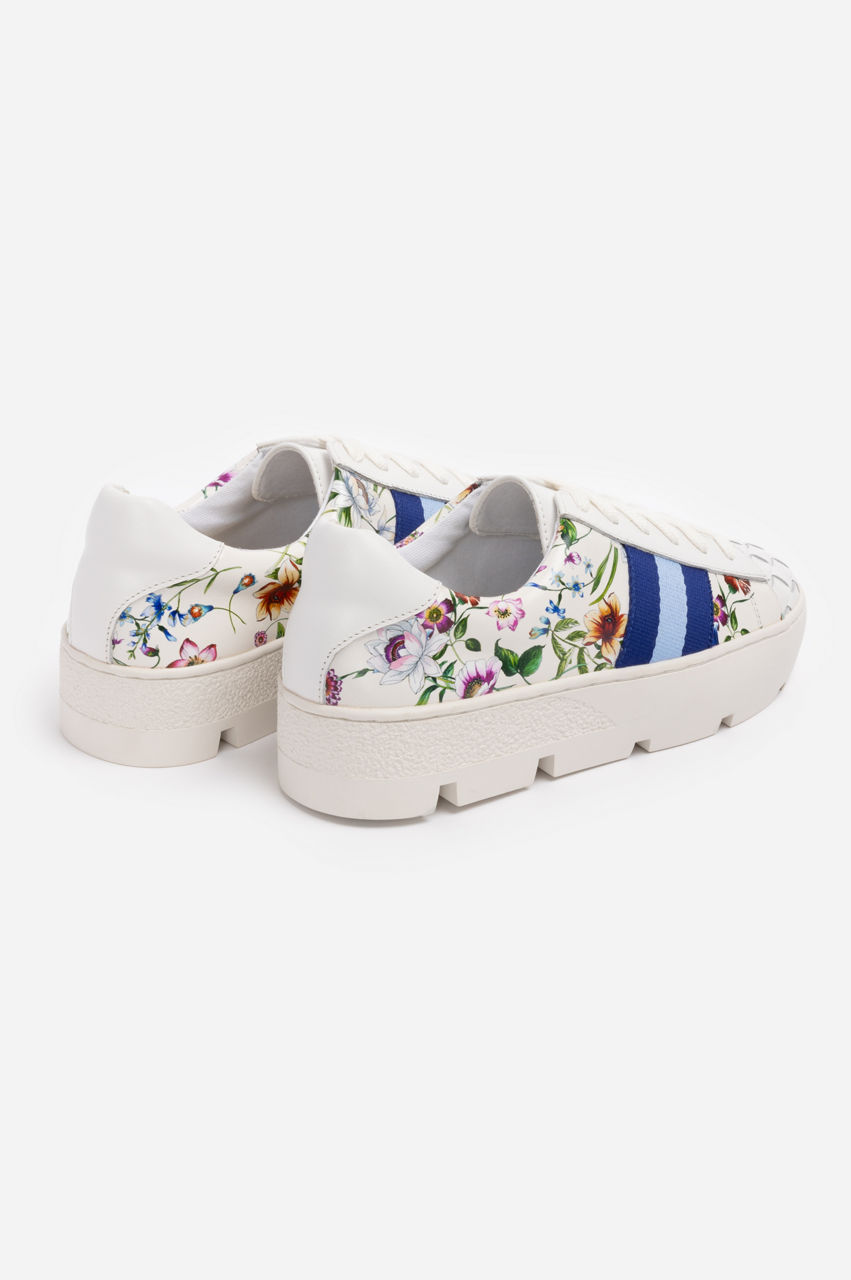 Blending delicate floral details with bold stripes, the Downtown Fiska Sneaker is a testament to personal style. Crafted from 100% leather and artfully detailed with colorful floral arrangements this sneaker features a thicker sole for additional comfort and wearability. Pair with bright shorts and your favorite tee for a fun weekend vibe.