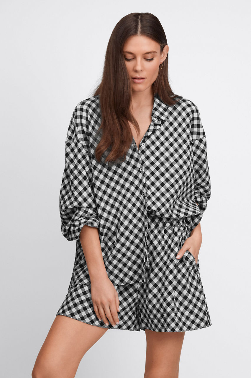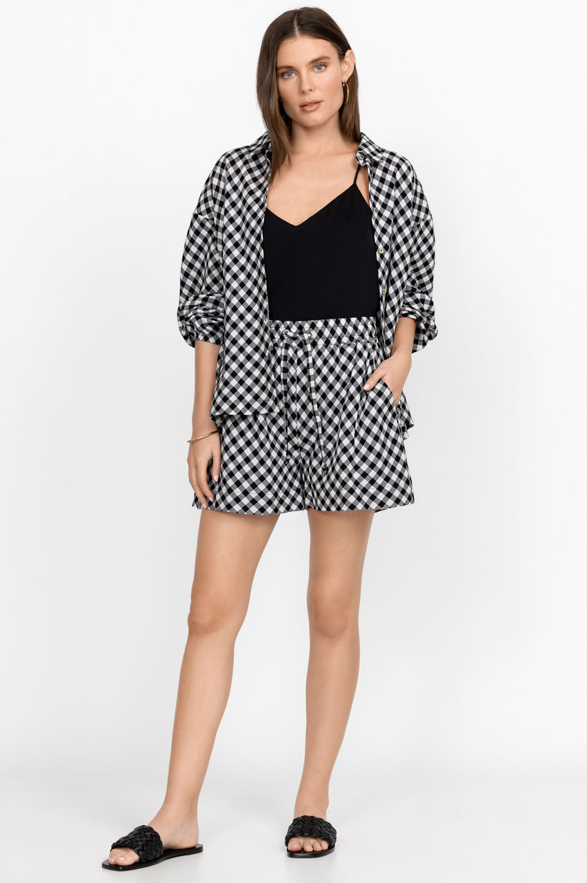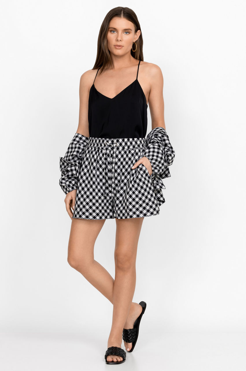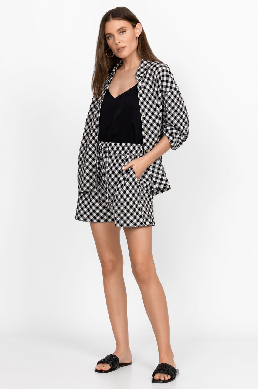 Perfect for keeping cool on warmer days, the Plaid Drawstring Shorts are a stylish revision of a downtime staple. Tinged with a 50's feel, these shorts are defined by a monochromatic herringbone check pattern and feature an elastic drawstring waist and pockets. Made from comfortable stretch cotton, they are a versatile option for off-duty days under the sunshine.