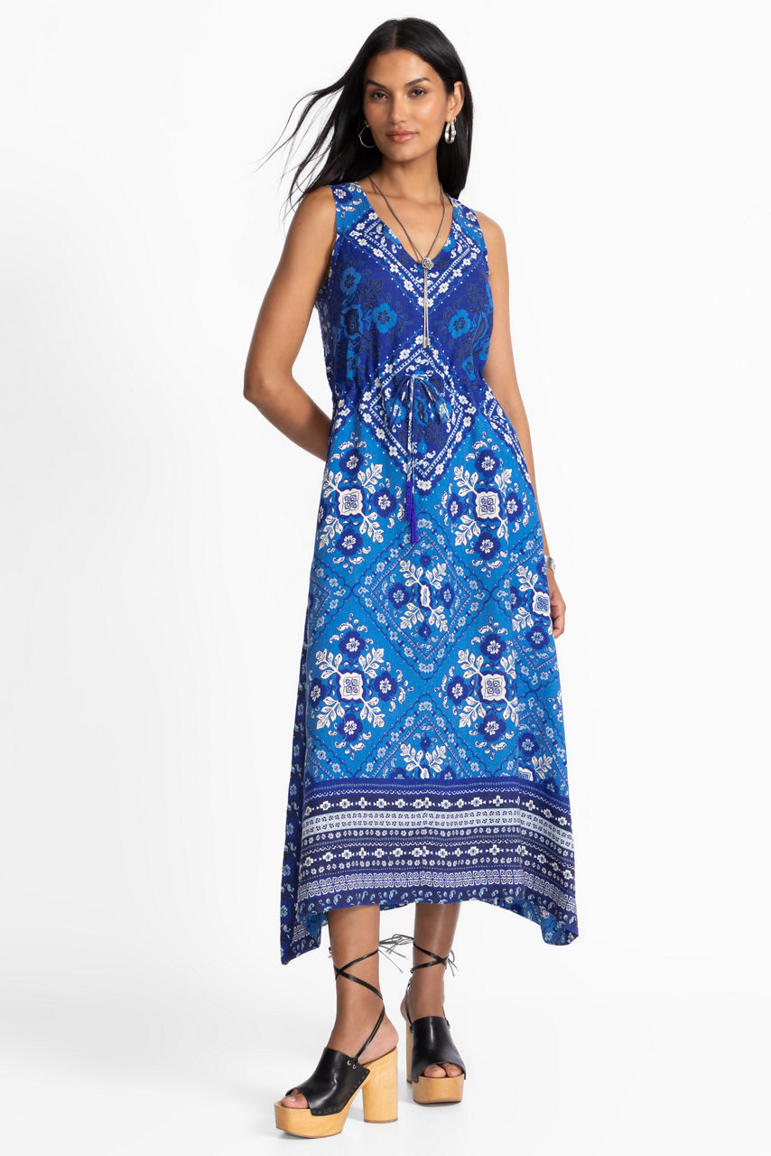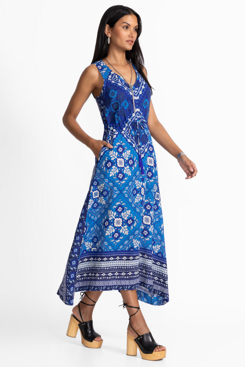 Embellished with a beautiful patchwork design in hues of blue, the Drawstring Tank Dress creates a stunning silhouette. Crafted from 100% linen, this flowing V-neck dress features a drawstring at the waist for a customizable fit and is finished with on-seam pockets. Pair with strappy sandals and a raffia bag for a vacation-inspired look.
