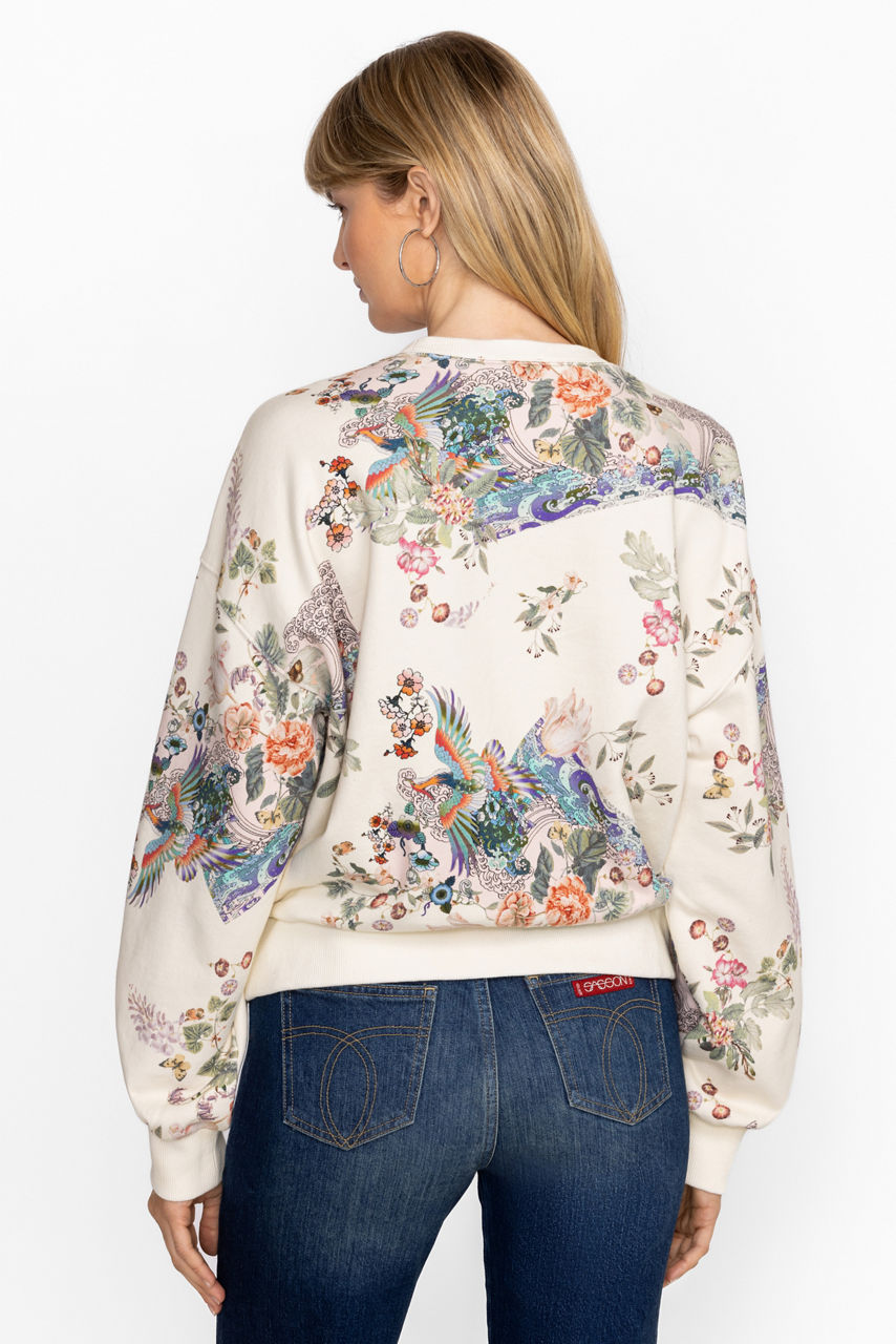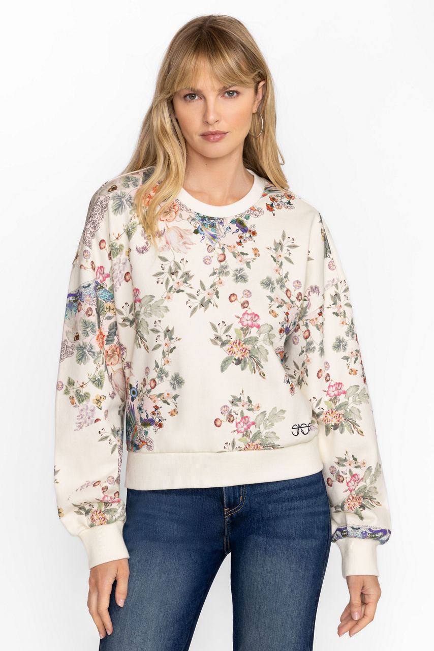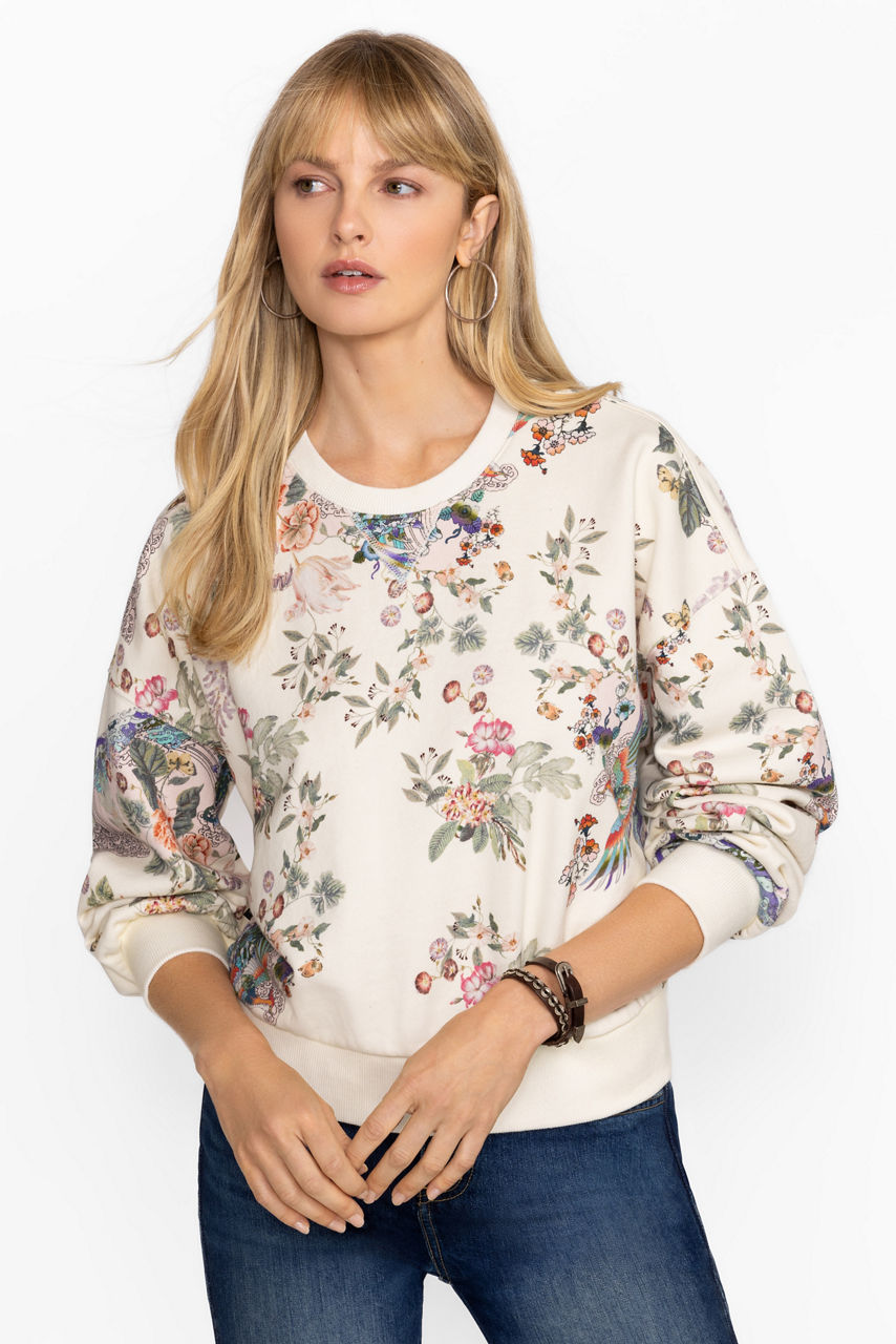 Stay cozy and stylish in our Dreamer Crewneck Sweatshirt with a floral print bodice and sleeves. Crafted from breathable cotton with a touch of stretch, it's an easy layering piece that doesn't skimp on style. Pair it with relaxed-fit jeans and trendy sneakers for a fresh weekend look.
