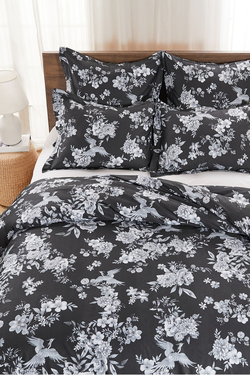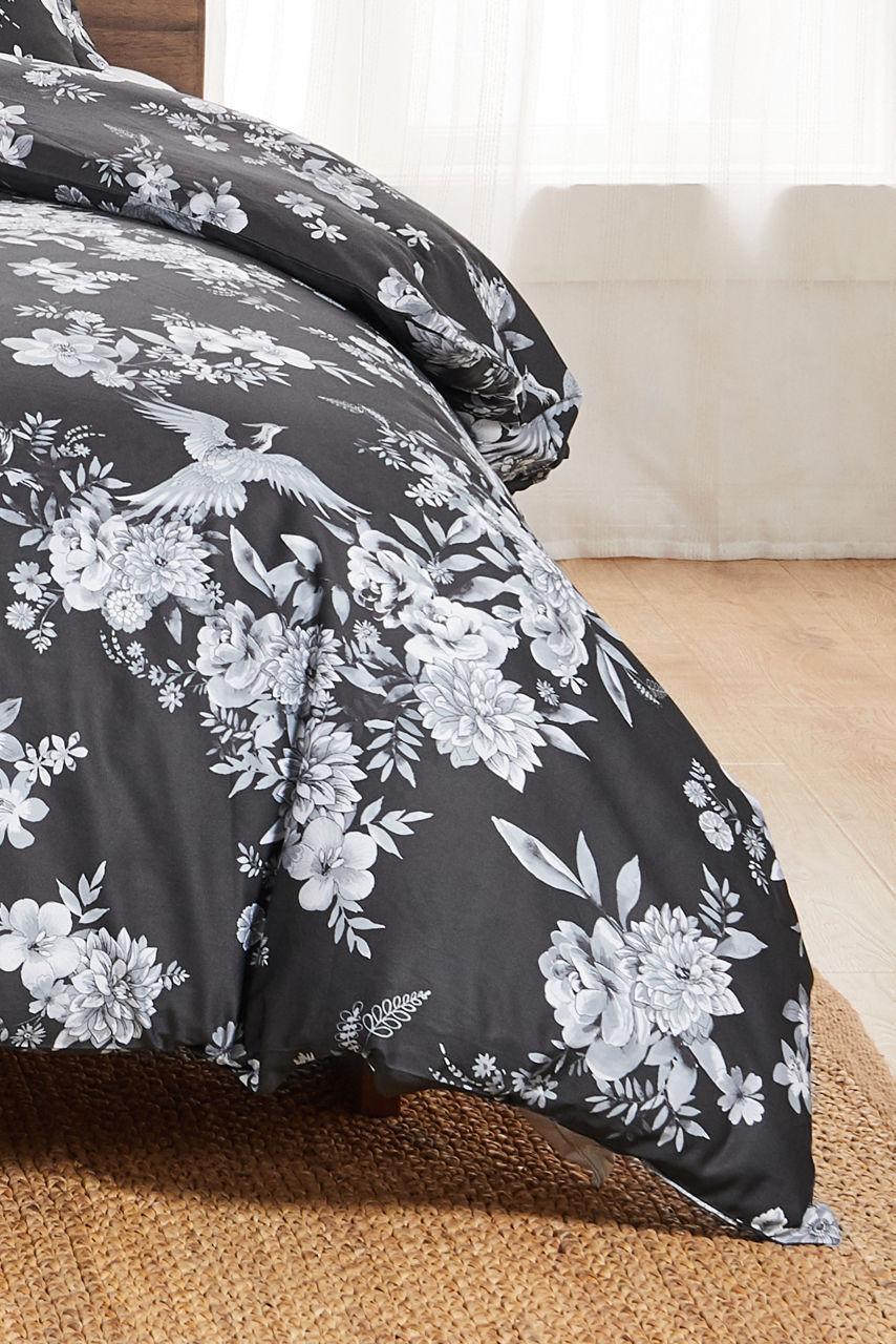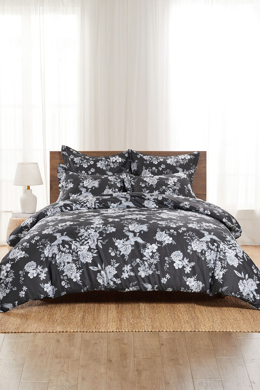 Naturally breathable, the Dreamer Garden Duvet Queen charms thanks to its prairie-like floral pattern. Designed from pure cotton, a practical choice for peaceful slumbers, this queen-sized duvet is enhanced by vintage white florals that pop against a contrast charcoal background. Use this duvet with the matching shams for a quaint bedroom look.