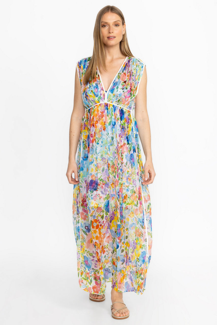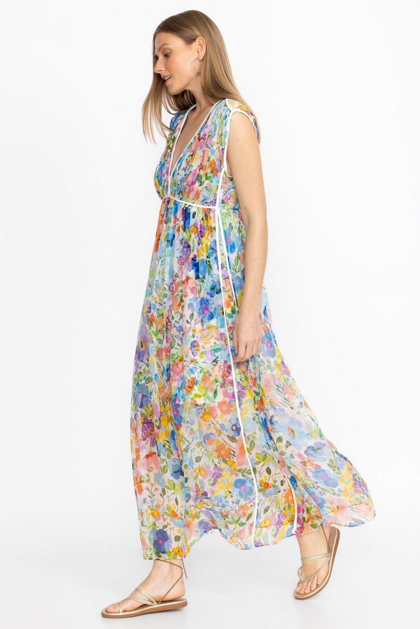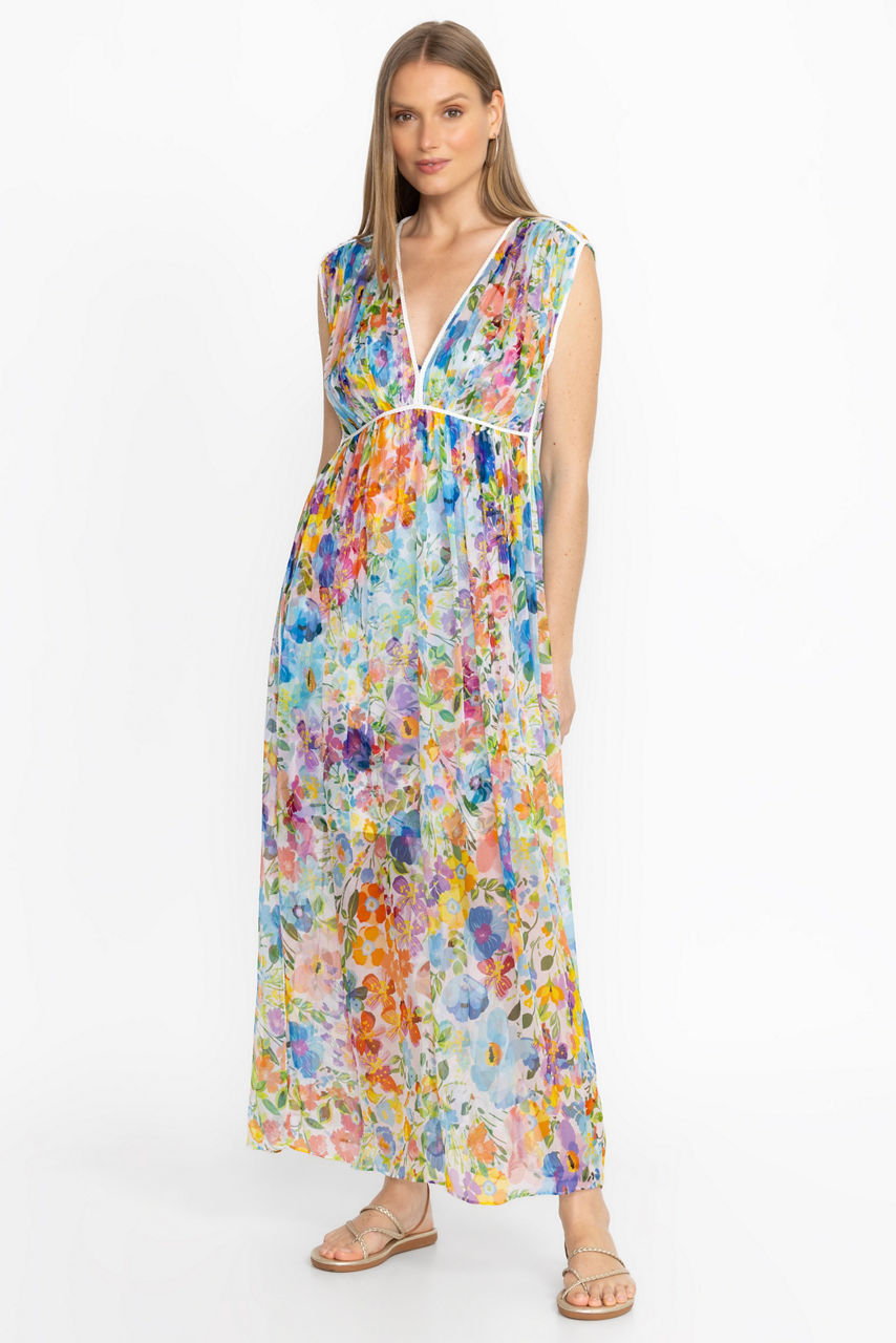 Crafted from 100% silk, the Dylane Maxi Dress is adorned with arrangements of colorful blooms. Featuring a deep V-neckline and wide shoulder straps, this dress offers an empire waist and is finished with a flowing maxi skirt. Pair with espadrille wedge sandals and a trendy raffia bag for a polished resort-ready look.