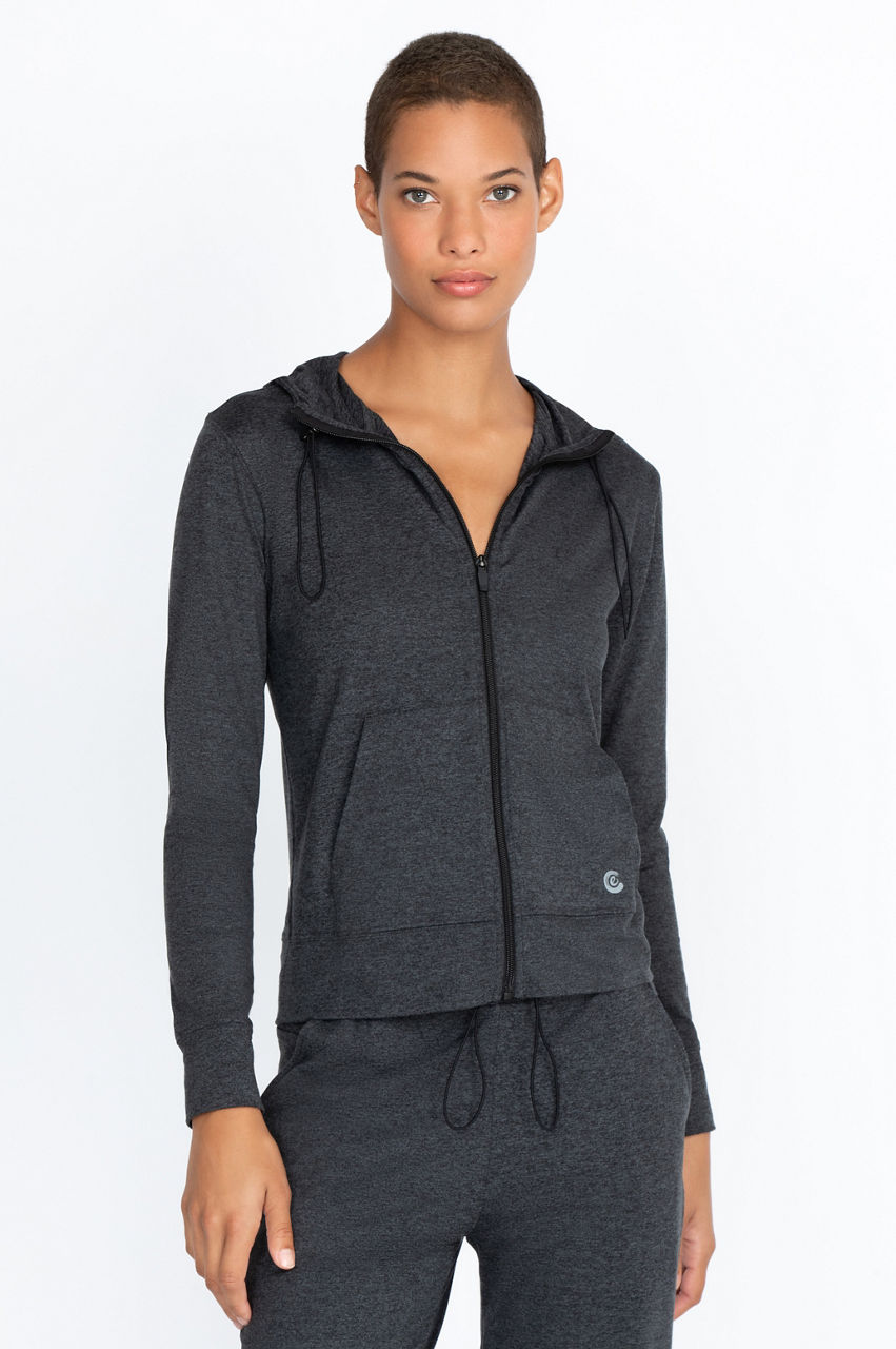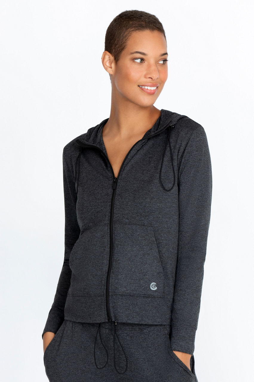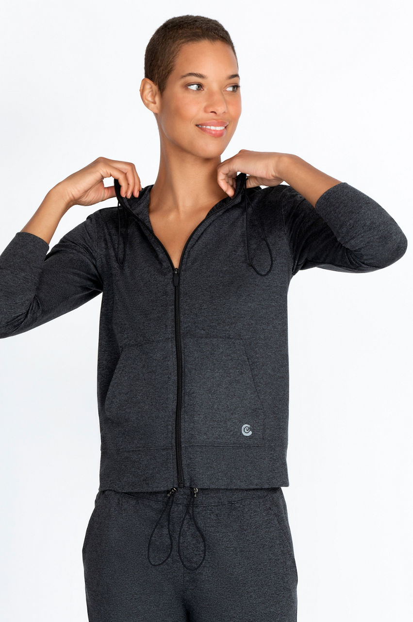 This classic zip-up hoodie will quickly become a go-to piece for when the weather gets cooler. The laidback fit and breathable fabric make it a great addition to your athleisure wardrobe, whether you need a warm layer for outdoor workouts or want a cozy piece for staying home. This Heather Zip-Up Hoodie works well with tapered joggers for a playful look or with skinny jeans for a casual outfit.