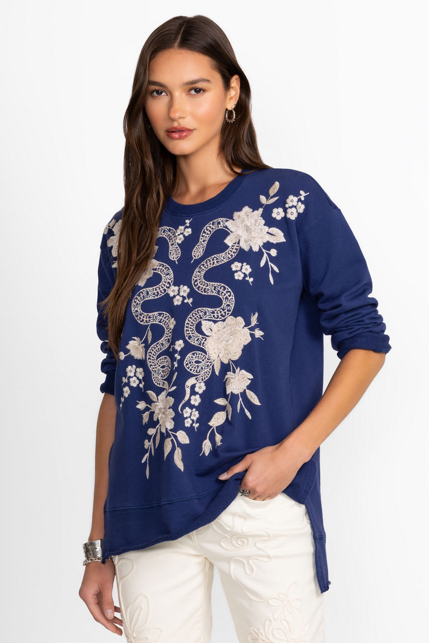 Crafted from 100% breathable cotton, the Edie Hi-Lo Pullover creates an elevated casual look. Featuring bold embroidered detailing on the front, this lightweight top is finished with a crew neckline and side slits for a relaxed fit. Pair with denim and fashion sneakers for a casual weekend ensemble.