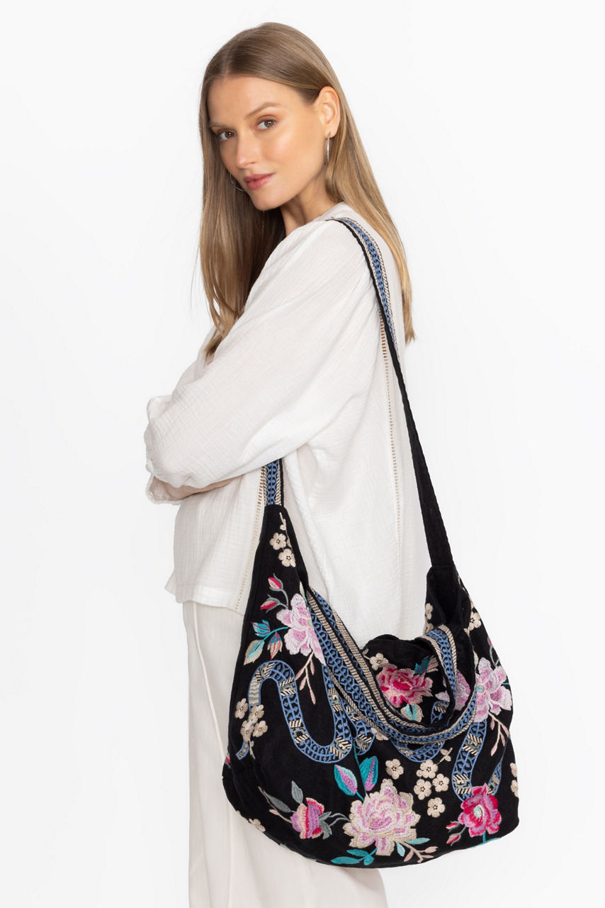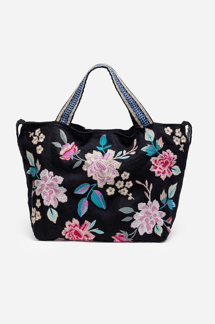 Crafted from 100% luxurious linen, the Edie Tote Bag is embellished with intricate placement embroidery. Featuring a magnetic snap closure for added security, this bold tote offers both handles and shoulder straps for a variety of carrying options. Pair with a neutral linen top and pants to add a splash of color to your ensemble.