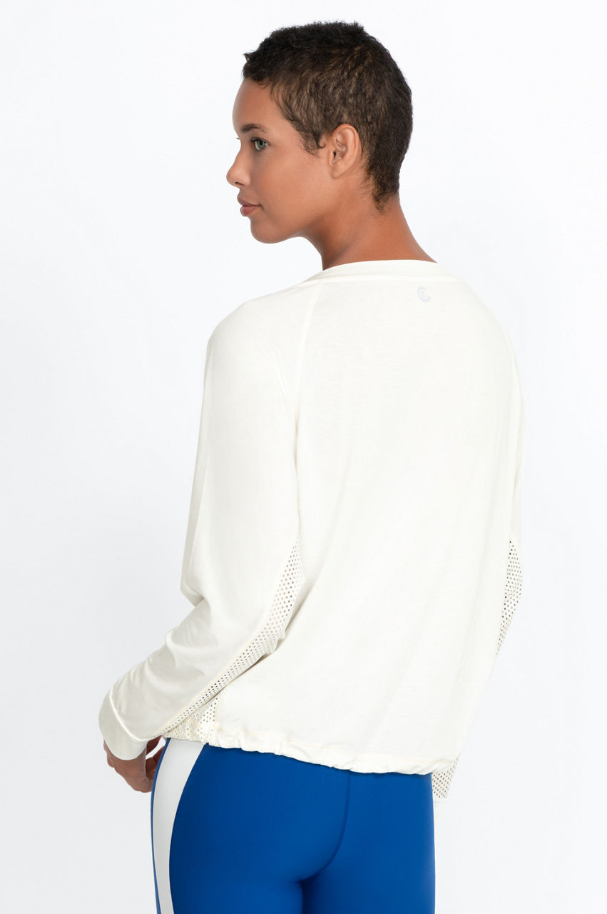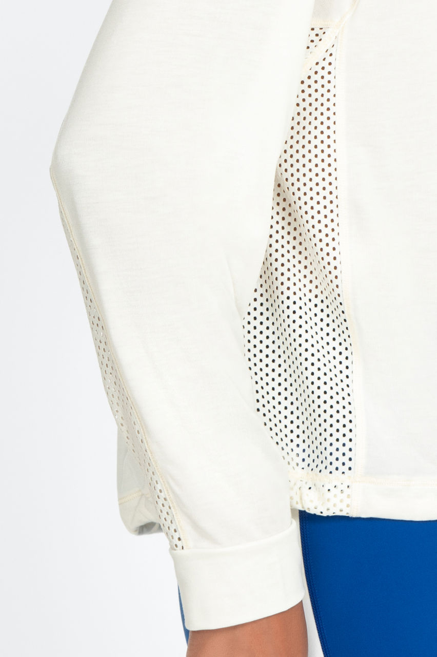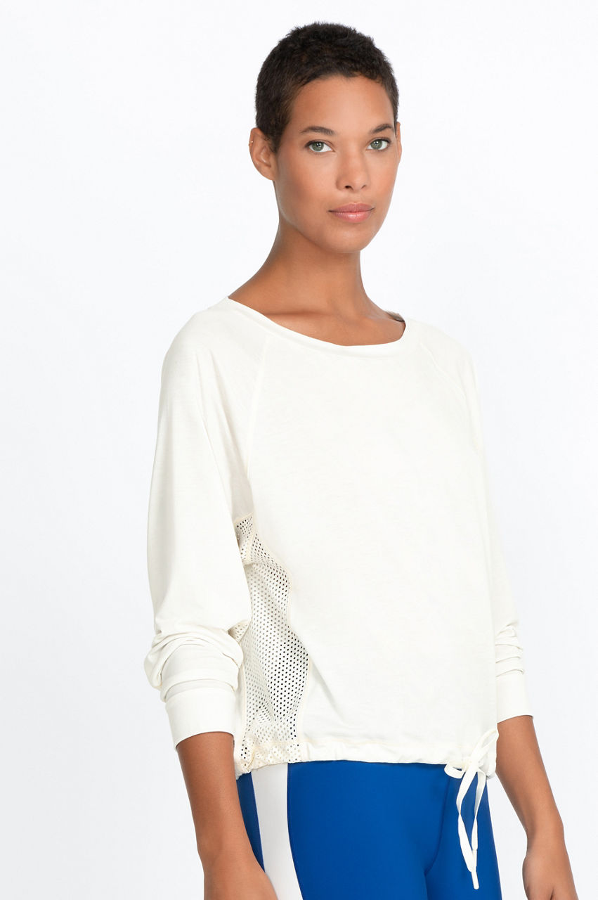 Our Effect Mesh Contrast Pullover is a a great staple piece for the winter months. Pair this staple with your favorite high-waisted leggings for a yoga look or use as a jacket after the gym.