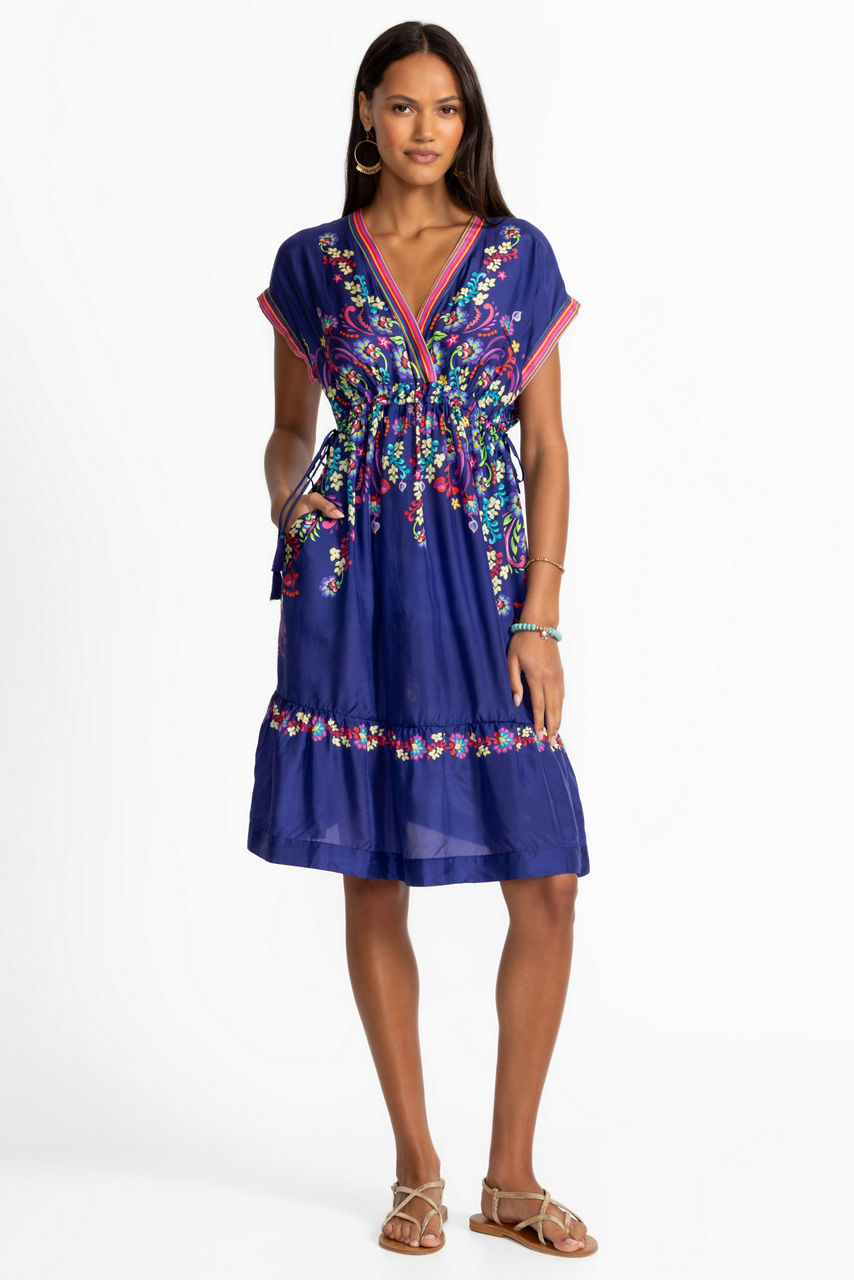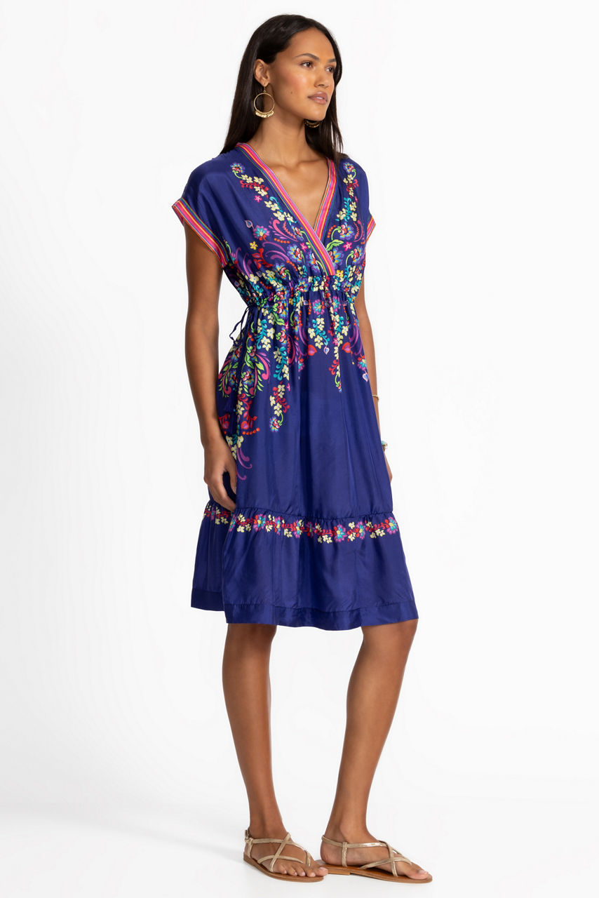 Crafted from flowing 100% silk, the Ellis Dress is adorned with stunning floral patterns in bold color. Designed with a faux wrap front and V-neckline, this slip-lined dress features Dolman sleeves and is finished with a tie at the waist with tassels. Pair with elevated sandals and a raffia clutch for an elegant daytime event.