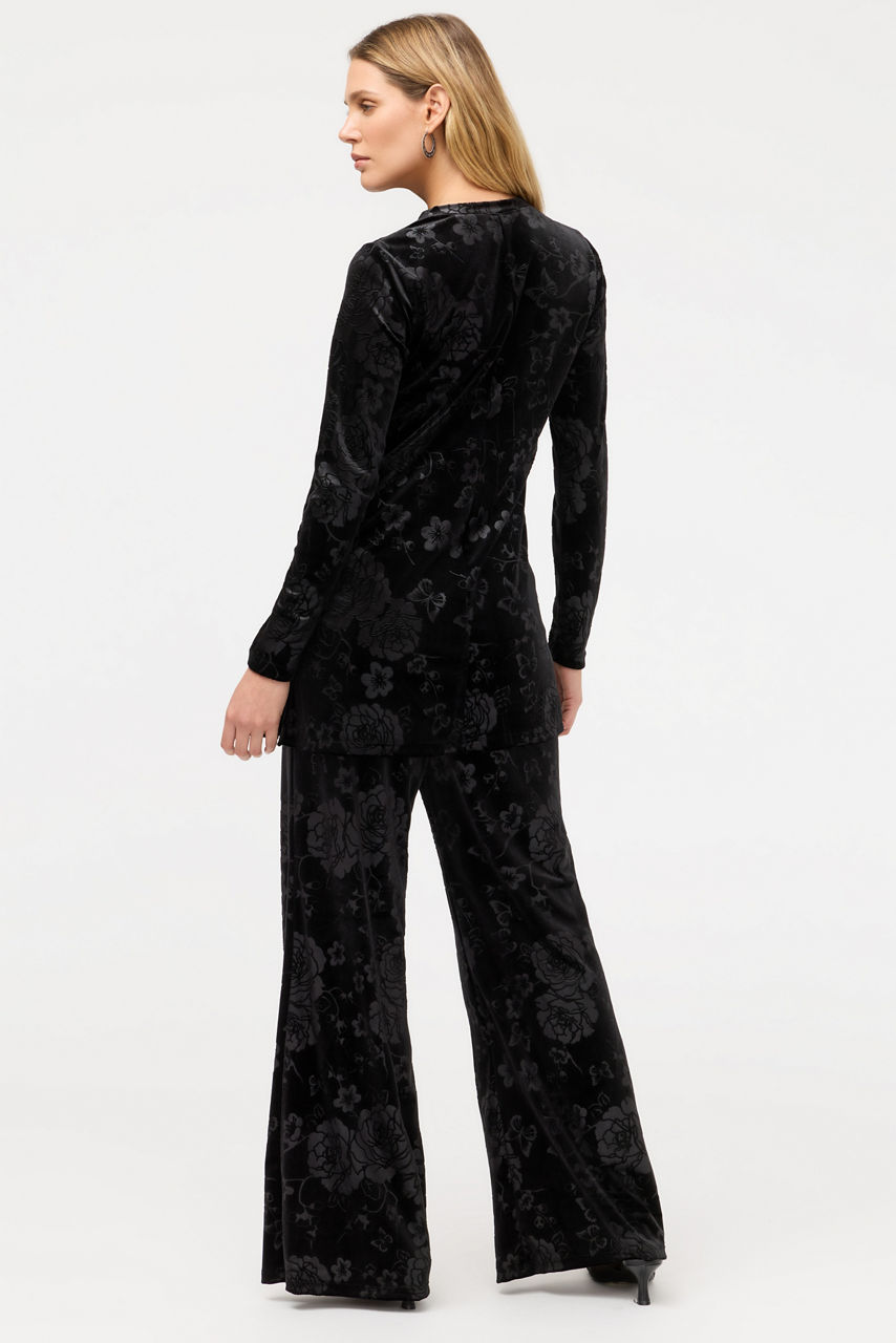 The Embossed Stretch Velvet Wide Leg Pants are embellished with an intricate eye-catching floral pattern. Crafted from a rich stretch velvet, these elevated casual pants feature an elastic waist and flowing wide legs. Pair with the Embossed Stretch Velvet Tunic and a pair of colorful flats for a fresh casual ensemble.