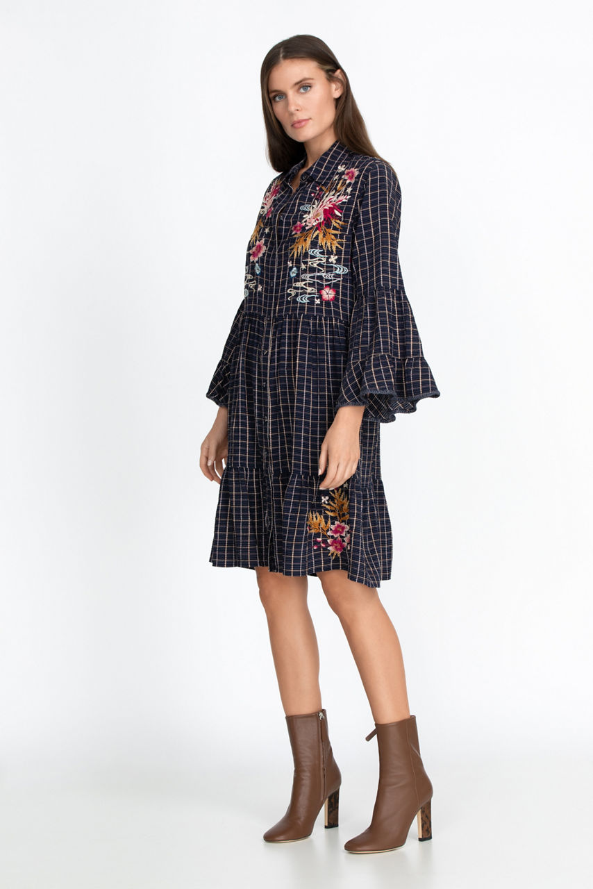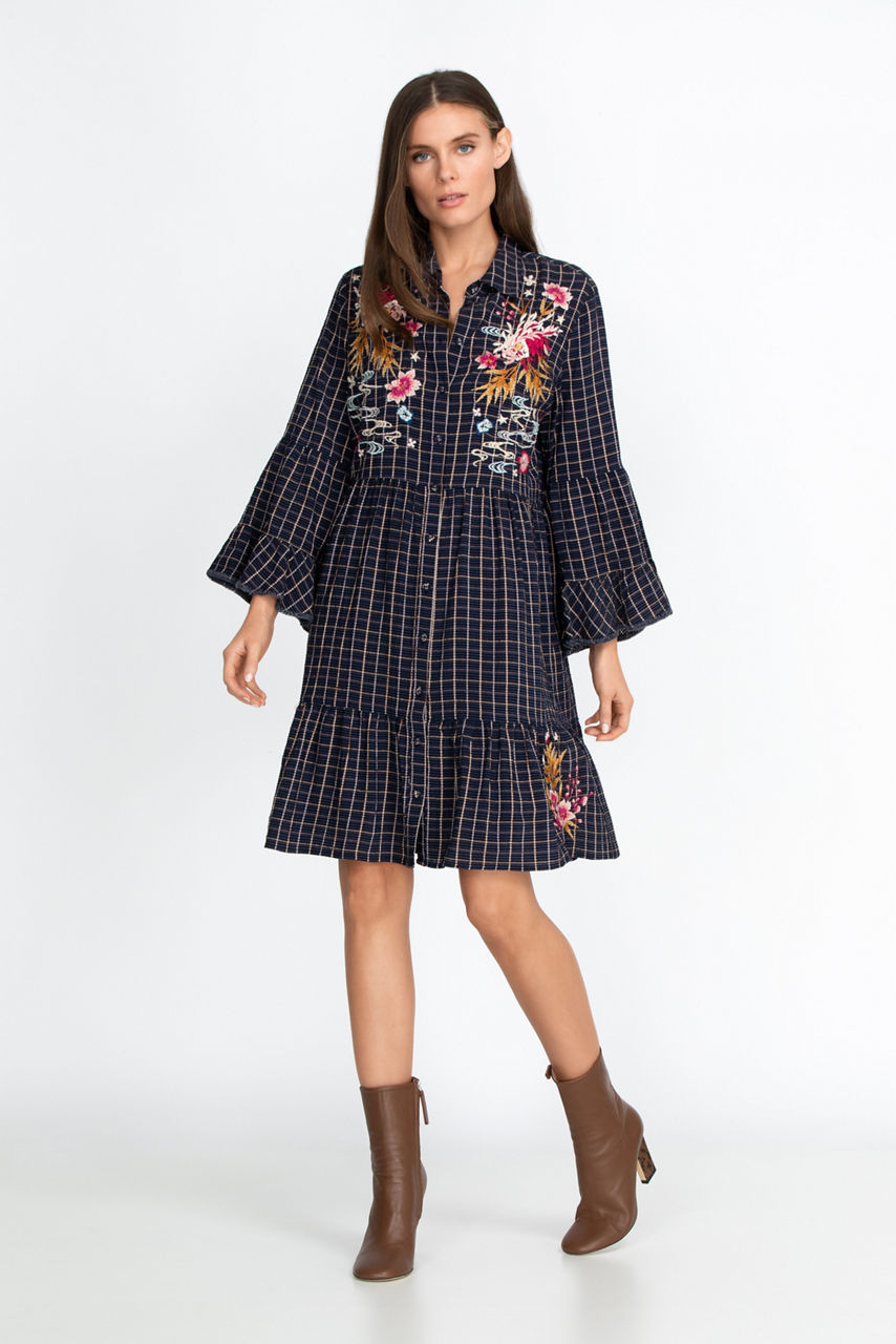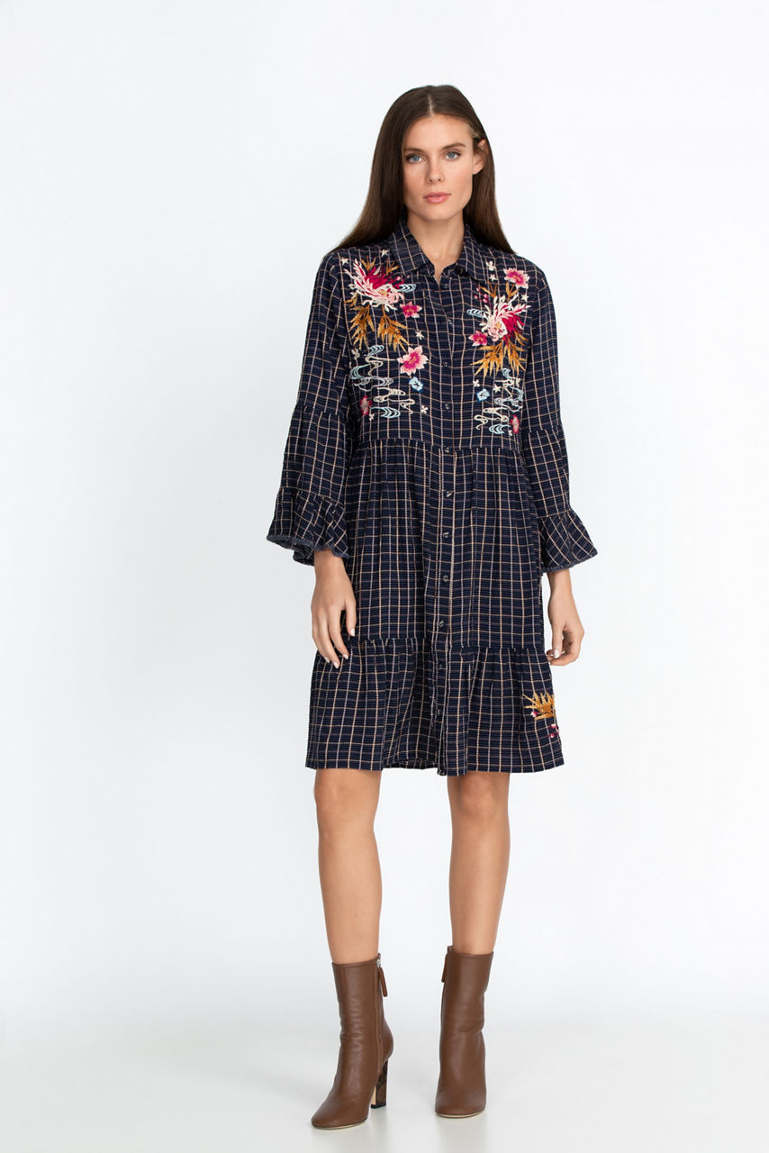 With its gorgeous floral motifs and classic tiered design, the Emiko Easy Tiered Dress is a timeless classic. This flattering dress features beautiful embroidery details that will embellish any outfit. Dress this piece up with some heels or opt for ankle boots for a boho-chic feel.