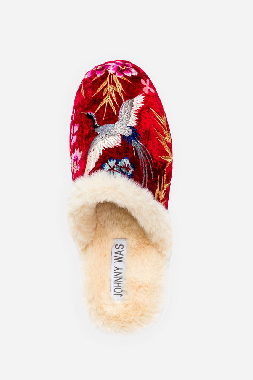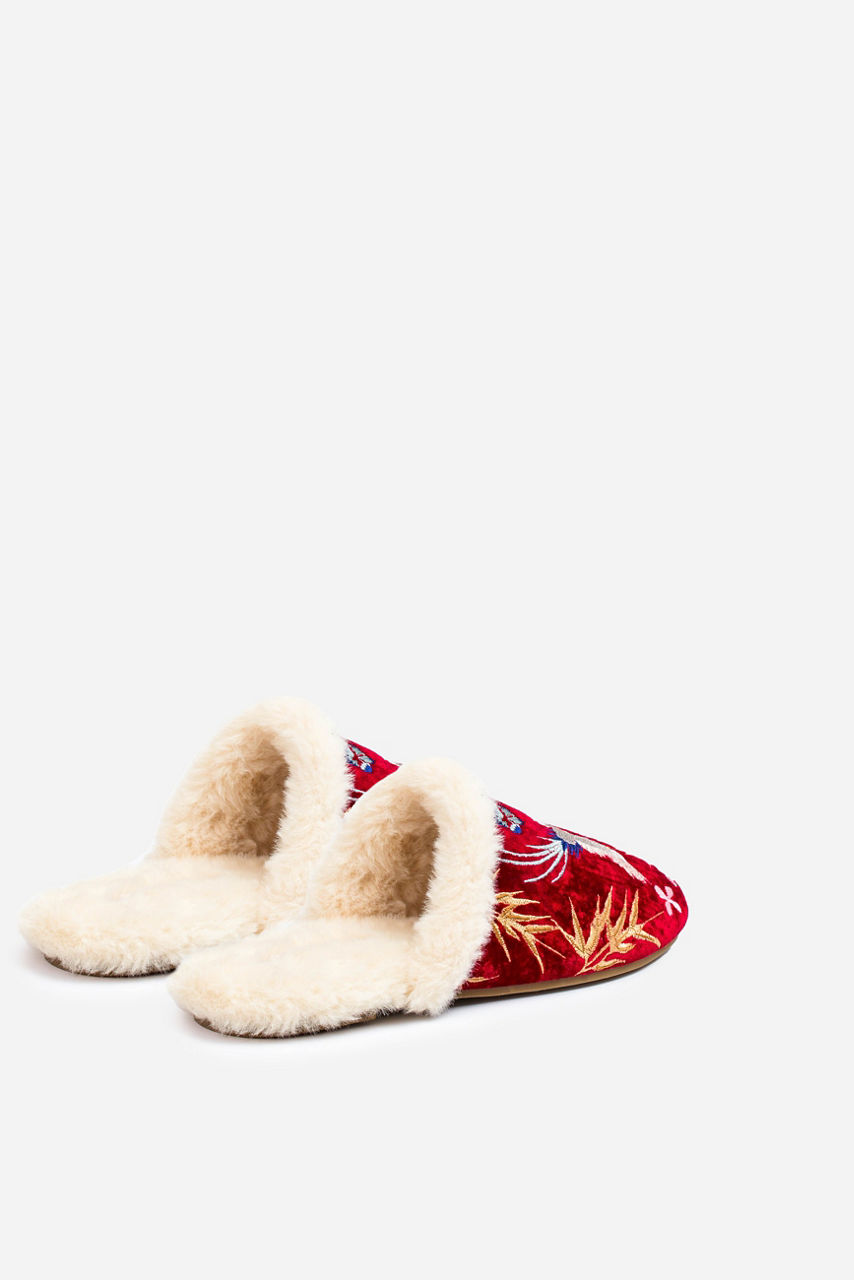 With their velvet upper and gorgeous embroidery, the Emiko Mule Slippers are a must-have item for lounging in style. The comfortable lining will keep you warm and cozy, while the vibrant color of the upper and elegant embroidery will elevate your lounge outfits. Wear these soft slippers in the evening with your favorite silk pajama set, or combine them with simple leggings.