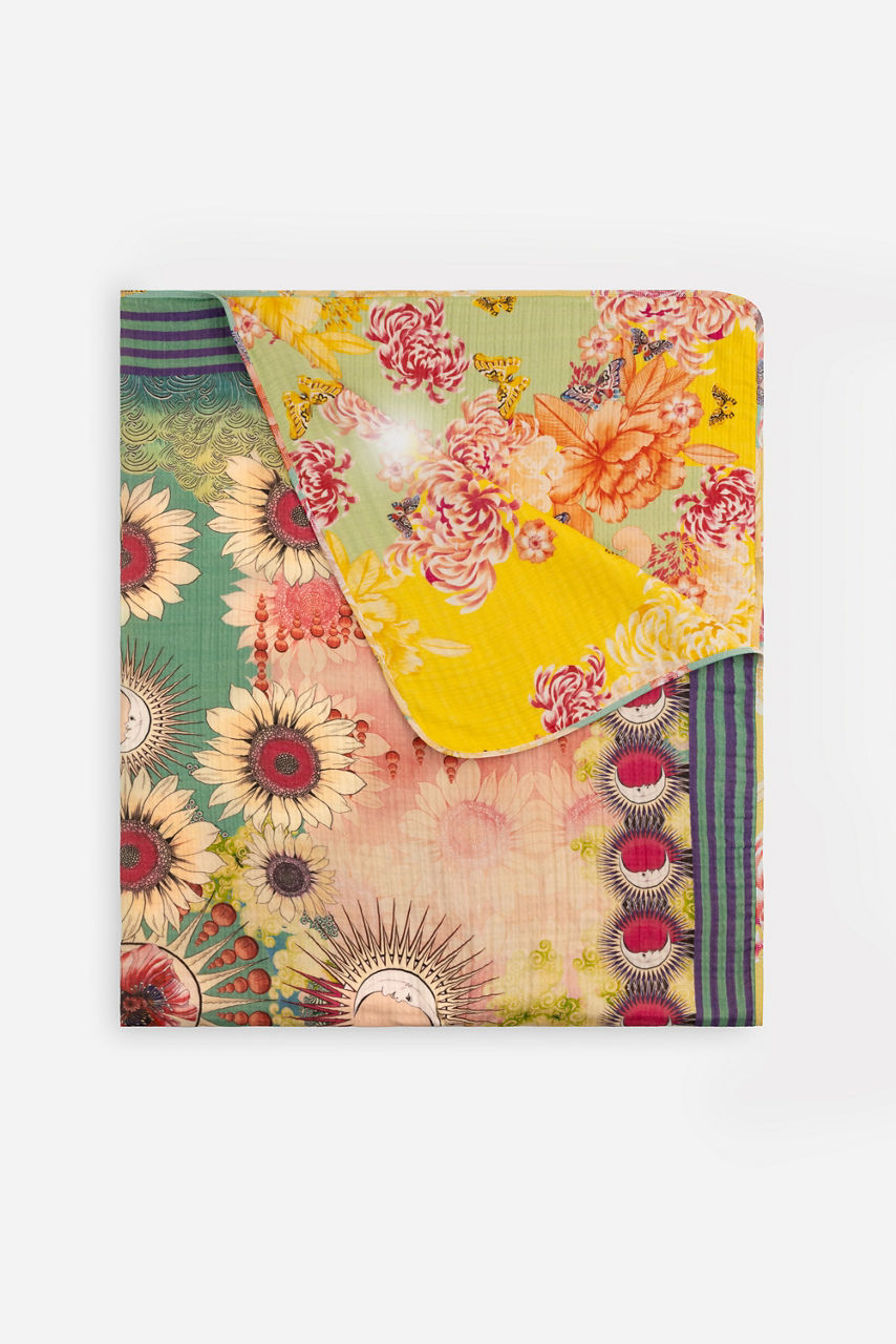 Crafted from 100% rich cotton, the Emily Gauze Blanket is fully reversible featuring two unique designs. Washed in vibrant color, each design creates a unique look and the blanket is easily stored in a coordinating bag. Display at the back of a sofa or across the arm of a chair for easy daily use and a unique decorative touch.