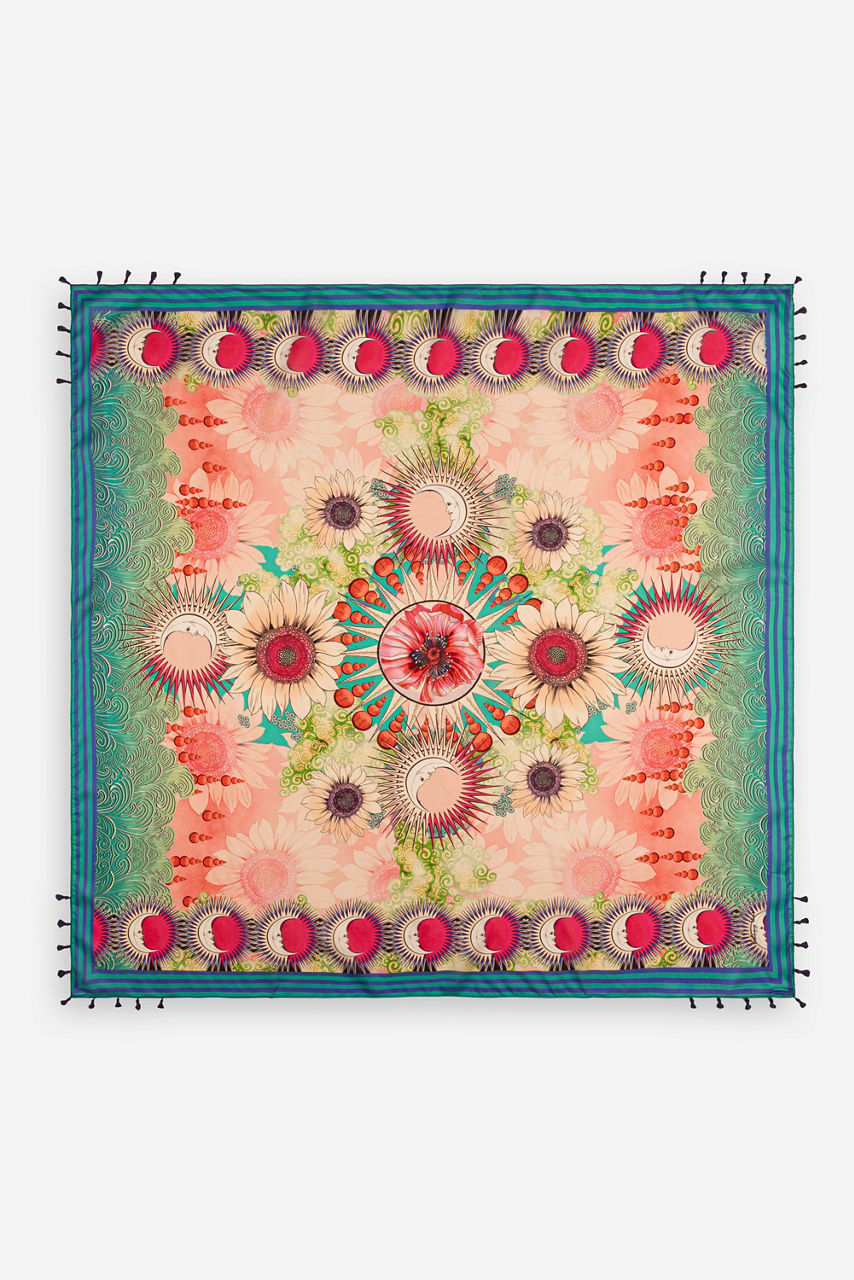 Crafted from 100% sumptuous silk, the Emily Silk Scarf adds a splash of color and hint of elegance to any look. Embellished with a muted floral design in a kaleidoscope of color, this flowing scarf is finished with decorative tassels at the edges. Wear tied loosely at the neck or add to the handle of a posh handbag for a colorful accessory.