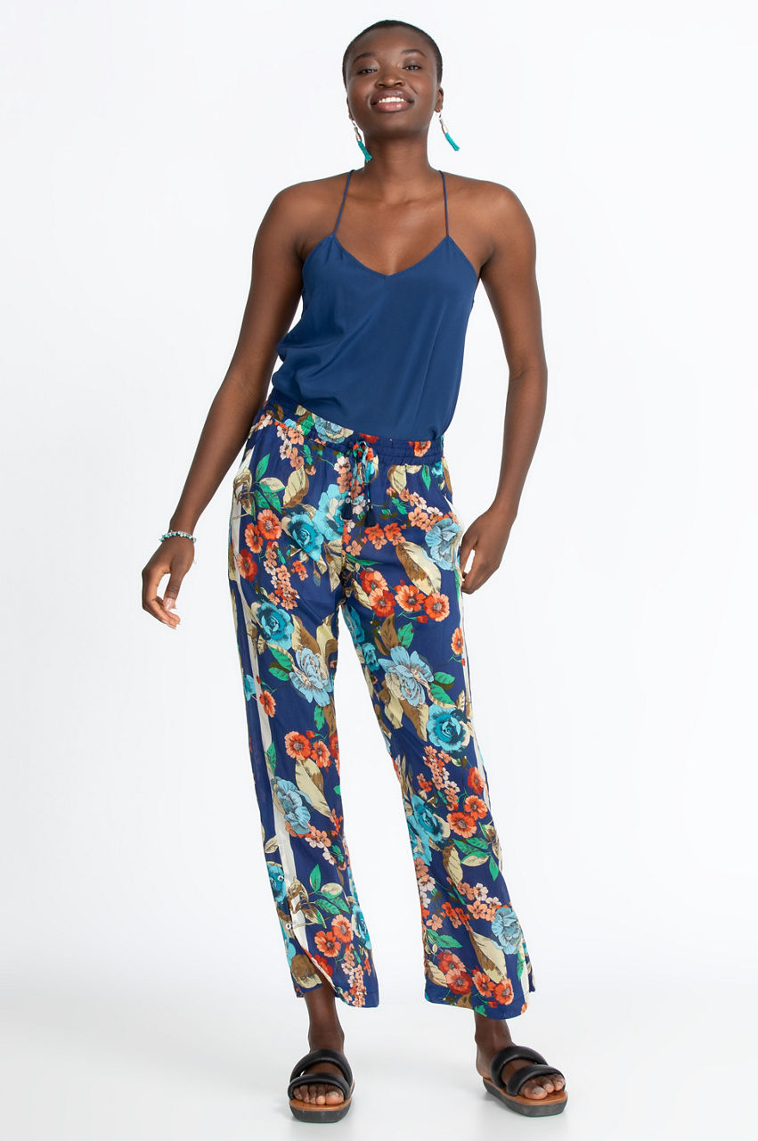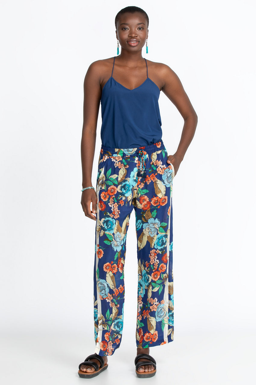 These flowy pants create a flattering and elongated silhouette thanks to their exceptional cut and quality rayon fabric. The dark background has a slimming effect while making the rich floral motifs stand out for an eye-catching result. Dress these stylish pants up with a classic button-down shirt and loafers, or dress it down with sneakers and a neutral T-shirt.