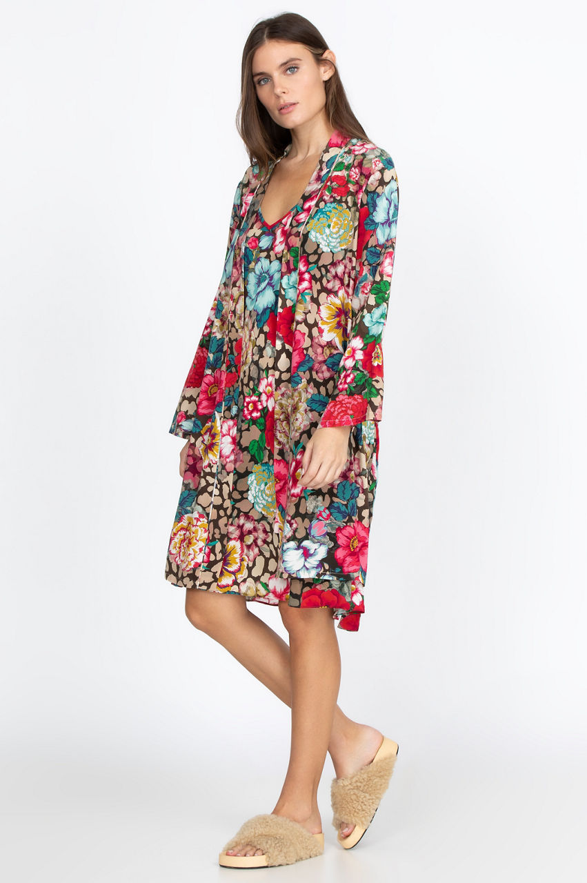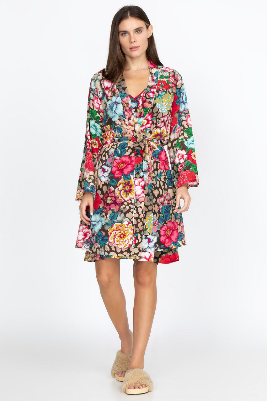 Have fun creating draped or layered effects with this chic robe. The floral and animal prints come together to infuse your lounging outfits with colors and stylish motifs while the belted construction creates a flattering silhouette. Layer this robe over a silk pajama set or a simple lounging outfit with a cotton tee and some lightweight joggers.
