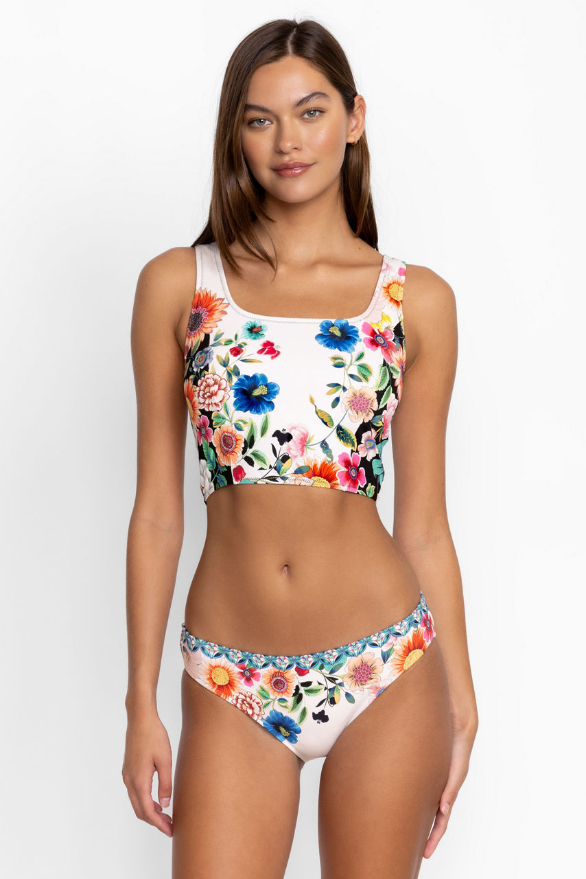 Bold and detailed, the Evening Palace Tank Bikini Top is a contemporary take on a classic cut. Crafted from a quick-drying material with added stretch for comfort, this one piece is fully lined with removable cups in a flattering tank design. Pair with matching bottoms, sunglasses, and a hat for a chic poolside outfit.