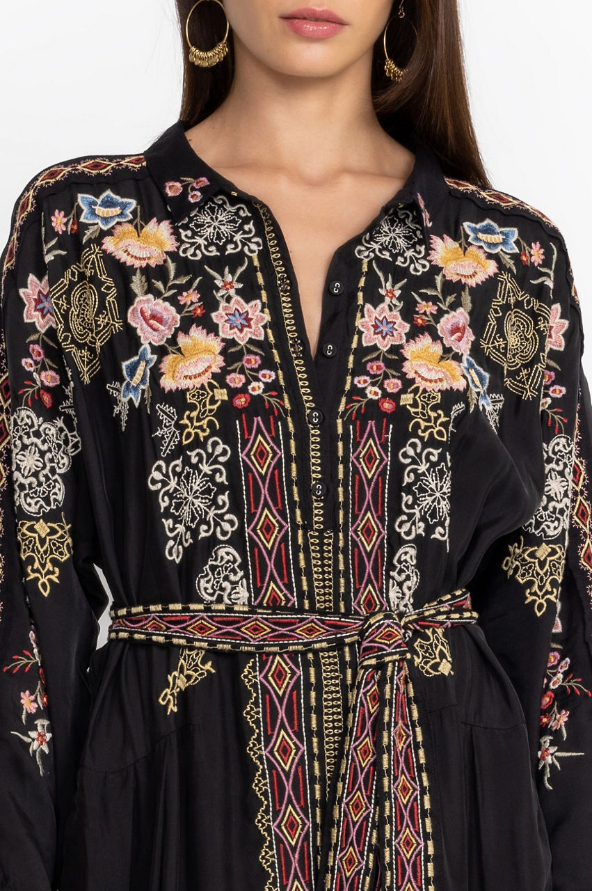 Underpinned with a sense of bohemian romance, the Fairlie Dress transforms a timeless silhouette into a statement must-have. This dress is crafted from a lightweight fabric and boasts a round neck, long sleeves, pockets, and a detailed placement embroidery. Style this dress with ready-to-wander sandals and simple jewelry.