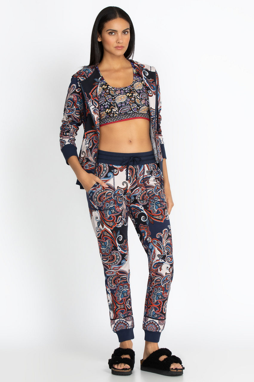 Our Paisley French Terry Jogger is sure to be a statement piece this season with its ultra-soft fabrication, stunning colorway, and gorgeous patterns. Paired with our Fall Paisley Modern Zip Up Hoodie, these joggers can craft a trendy, laid-back look. Complete the outfit with your favorite white sneakers and a simple necklace.