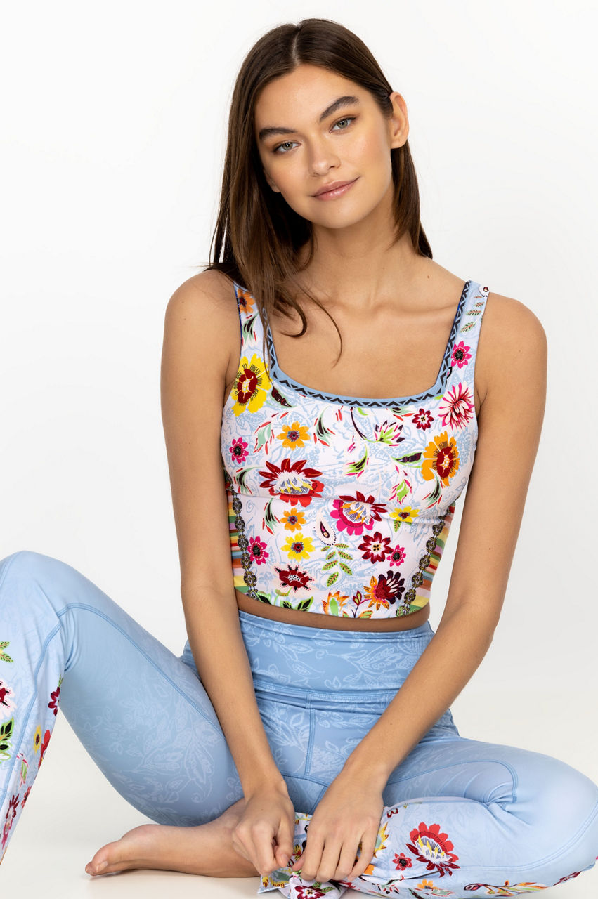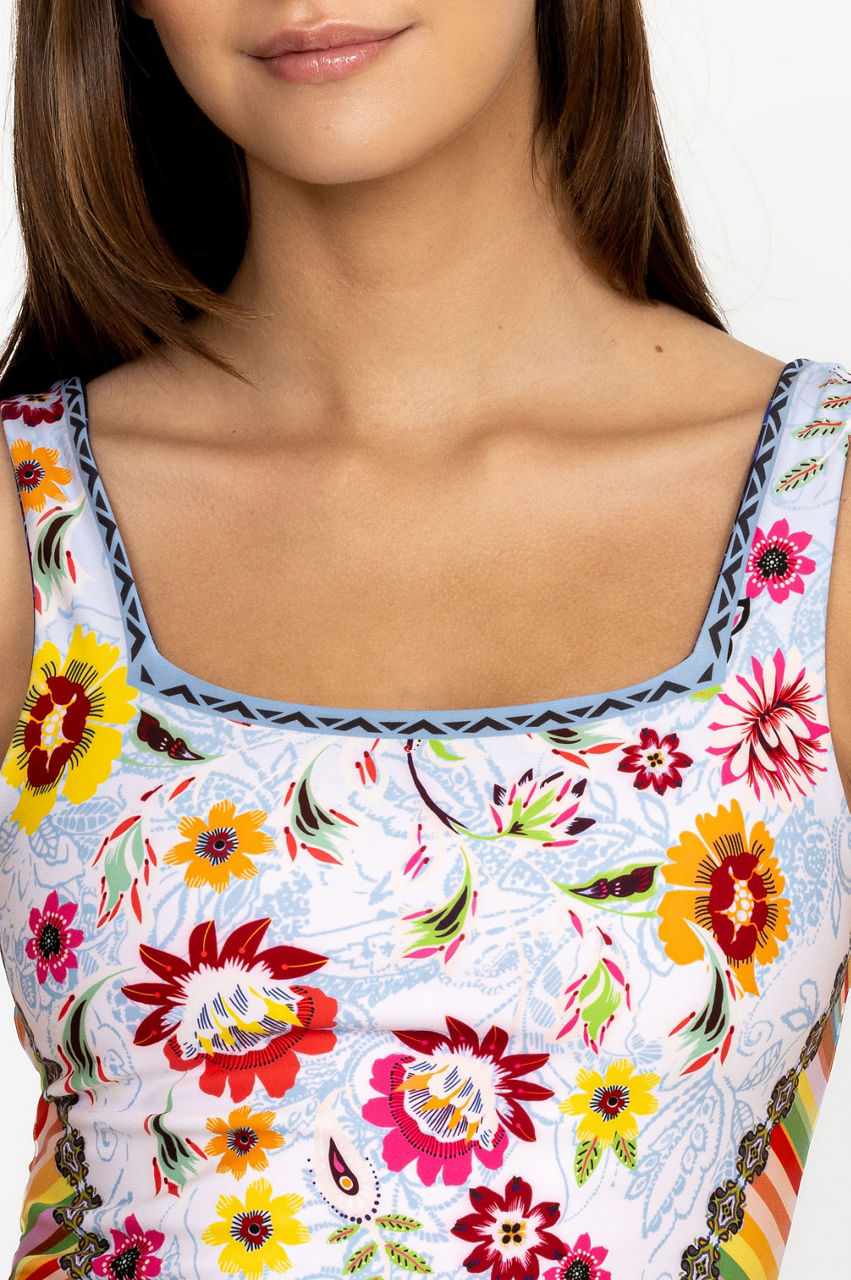 Cut in a close fit, the Farrow Reversible Square Neck Compression Tank is equal parts functional and flattering. Perfect for workouts and midday power walks, this tank is made from a breathable stretch material and features a square neck, shoulder straps, a lively floral pattern, and a reversible side with an additional floral print. Wear with leggings for a streamlined exercise ensemble.