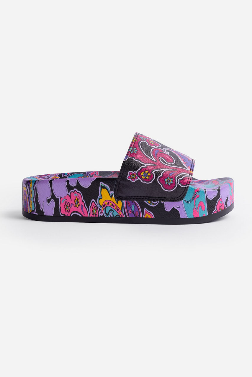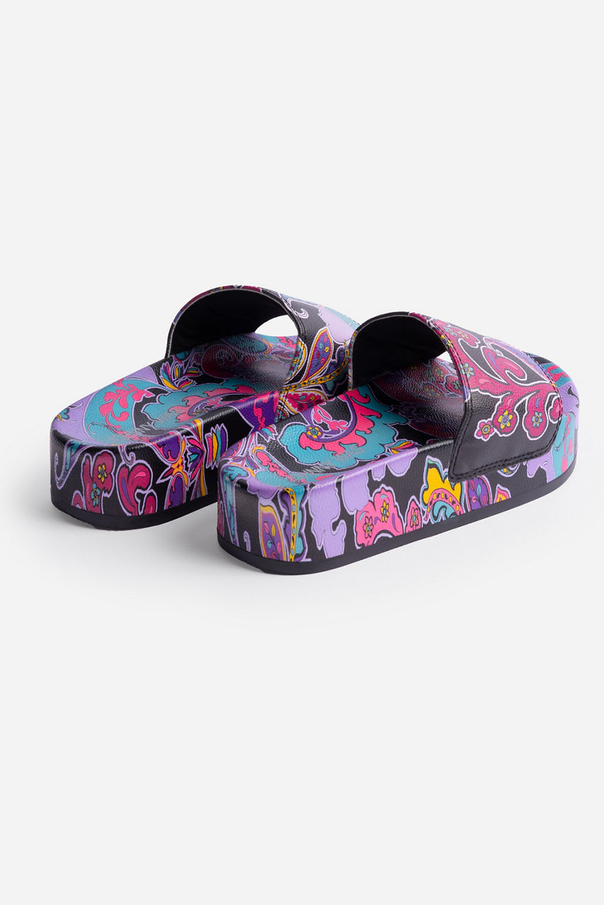 Beautiful and bold, the Platform Pool Slides are washed in brilliant color and vibrant floral patterns. Crafted from a durable lightweight material, these slides feature a thick sole and a wide strap across the footbed for extra comfort. Pair with Johnny Was Fatima swimwear for a perfectly coordinated poolside look.