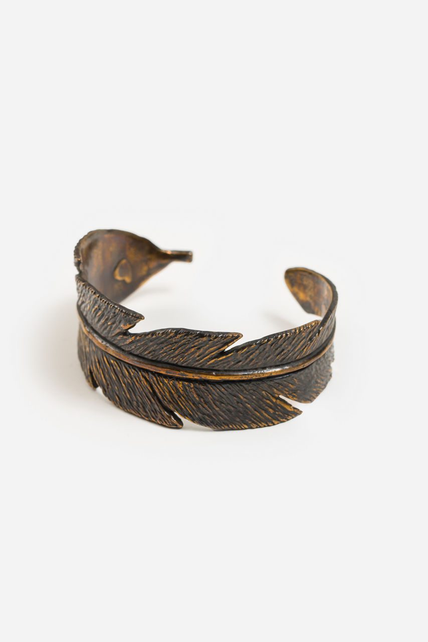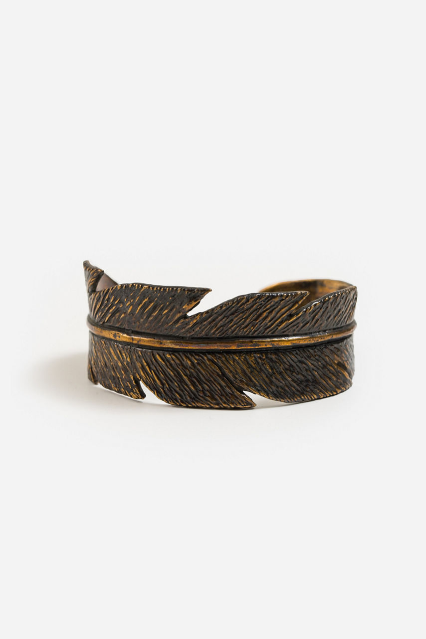 Inspired by the earth, the Feather Cuff Bracelet brings an insouciant feel to your new season repertoire. Designed from durable brass, this cuff bracelet boasts open ends and an engraved feather design that elegantly wraps across the front. Style this bracelet with a linen maxi dress during the day and switch to black silk pieces after dark.