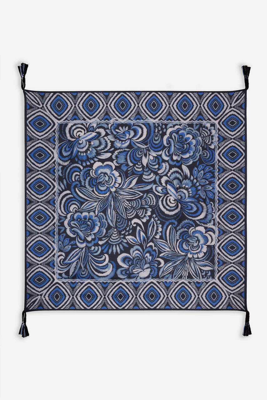 Embellished with an eye-catching floral print, the Feathery Flower Silk Scarf adds beauty and elegance to any look. Crafted from 100% luxurious silk, this unique scarf is finished with a bold print and contrasting border and features tassels at each corner. Wear tied at the neck or on the handle of your favorite bag for a splash of color and enhanced texture.
