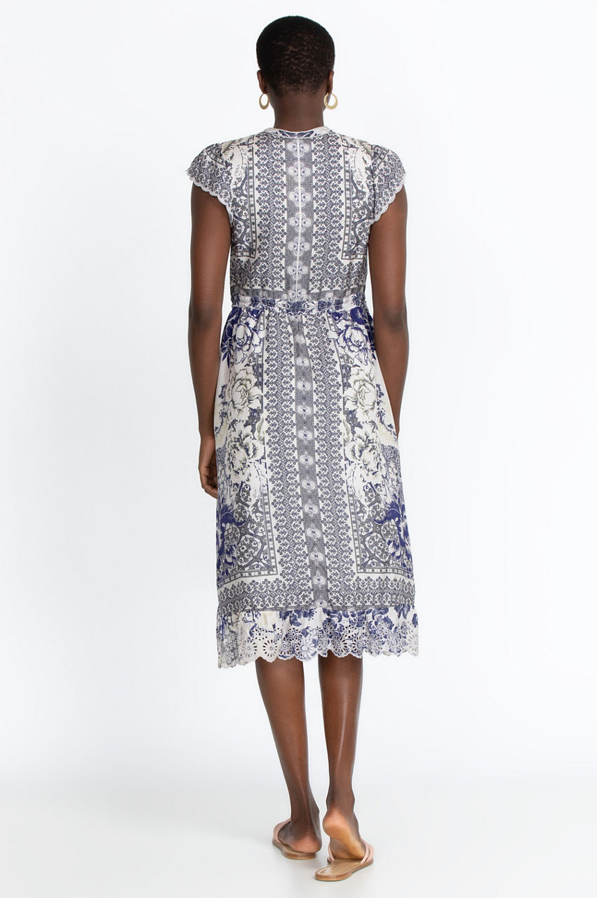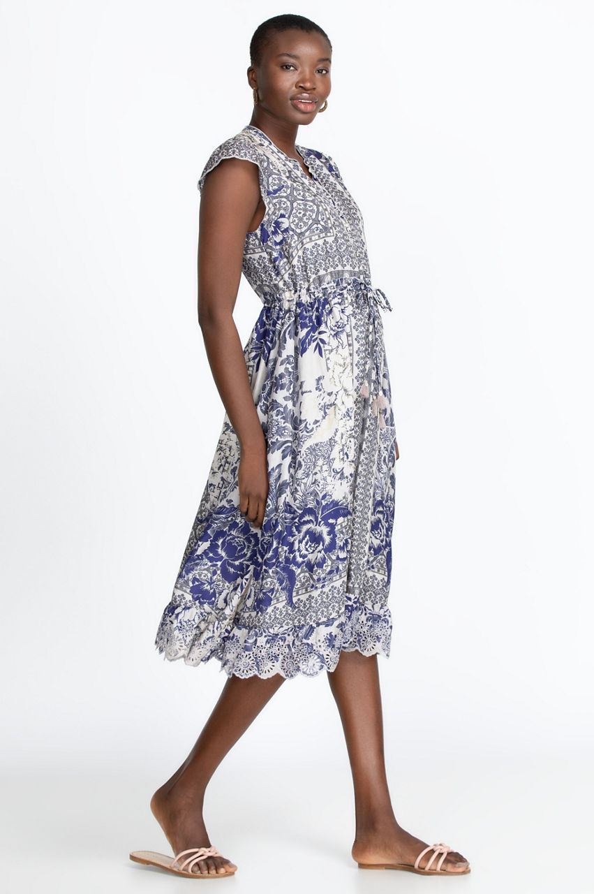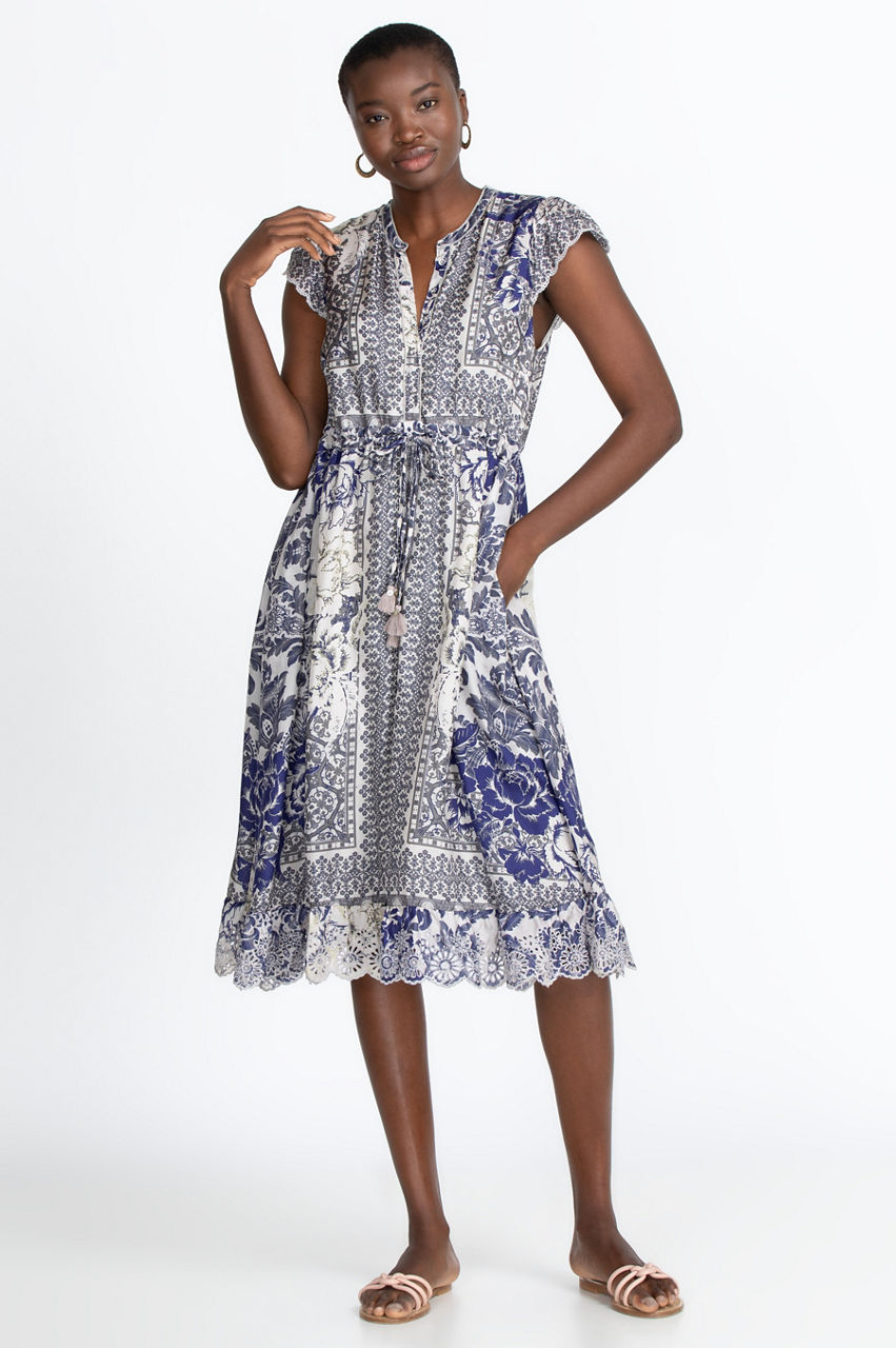 The Filo Lucy Dress is a boho-inspired piece with a flowy silhouette. The combination of floral and geometrical motifs, the cap sleeves, embellished hem, and the tassel detail make this maxi dress a sophisticated piece that will elevate your style. Create a boho-chic look by styling this stunning maxi dress with a loose sleeveless cardigan.